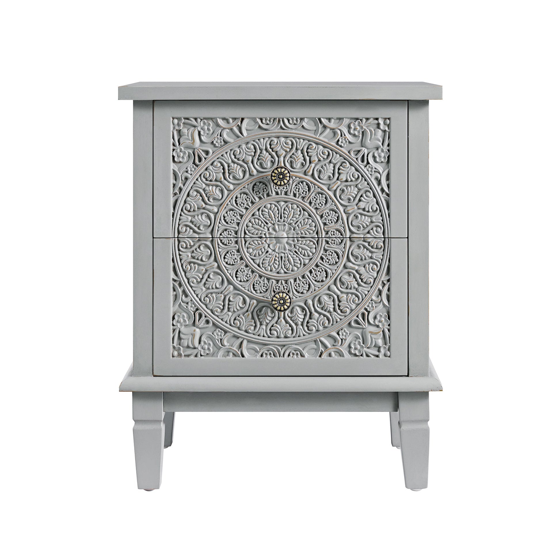 Chantilly Mid Grey Carved 2 Drawer Bedside Table
