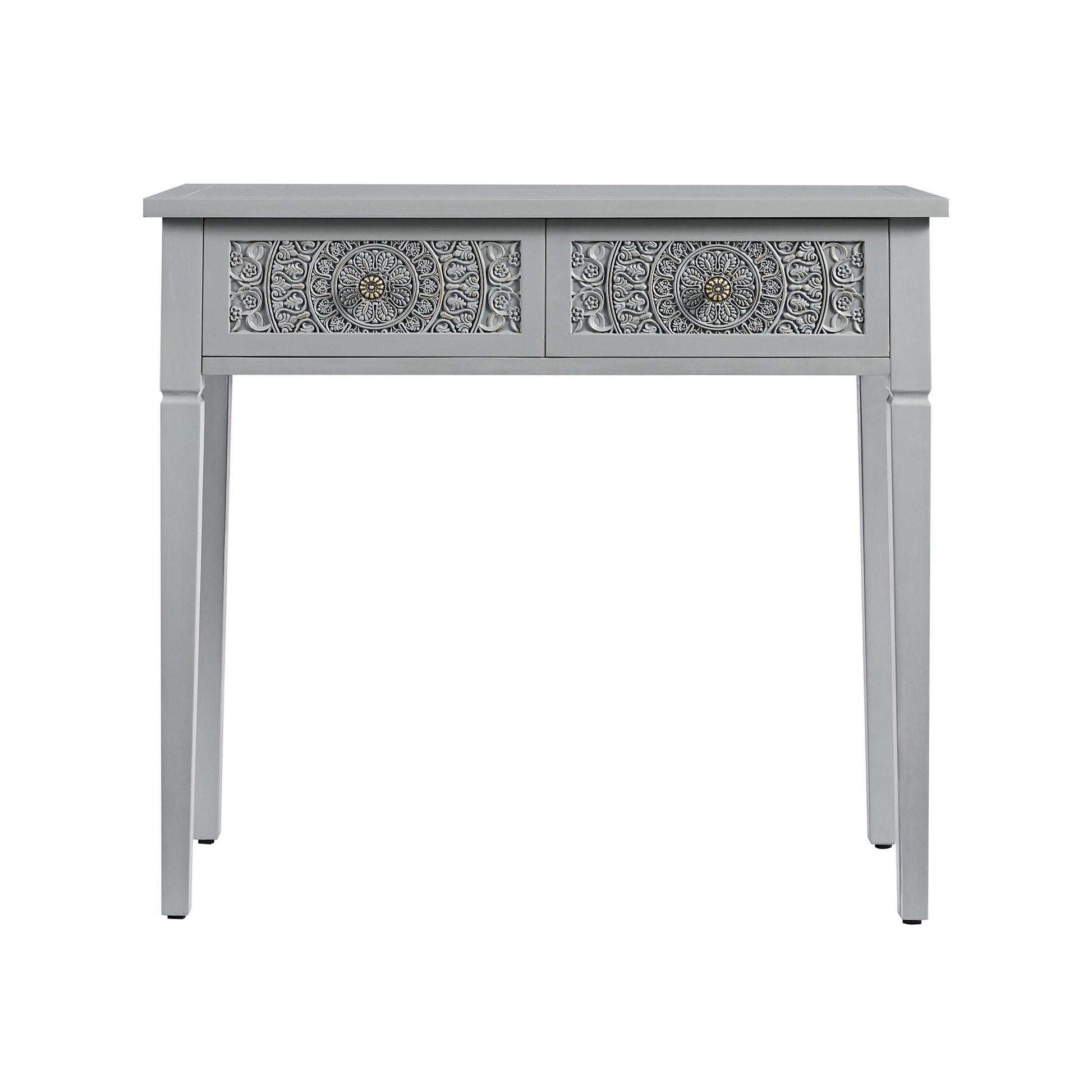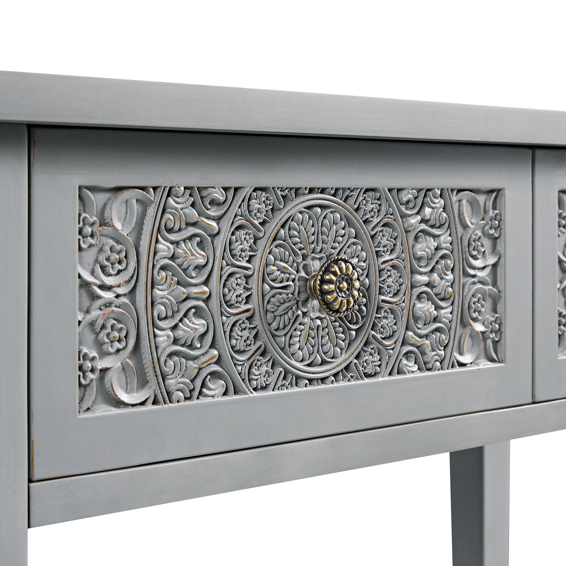 - A romantic reinterpretation of classic, the Chantilly Carved Console Table in Mid Grey brings timeless charm to your hallway, bedroom, or living space.