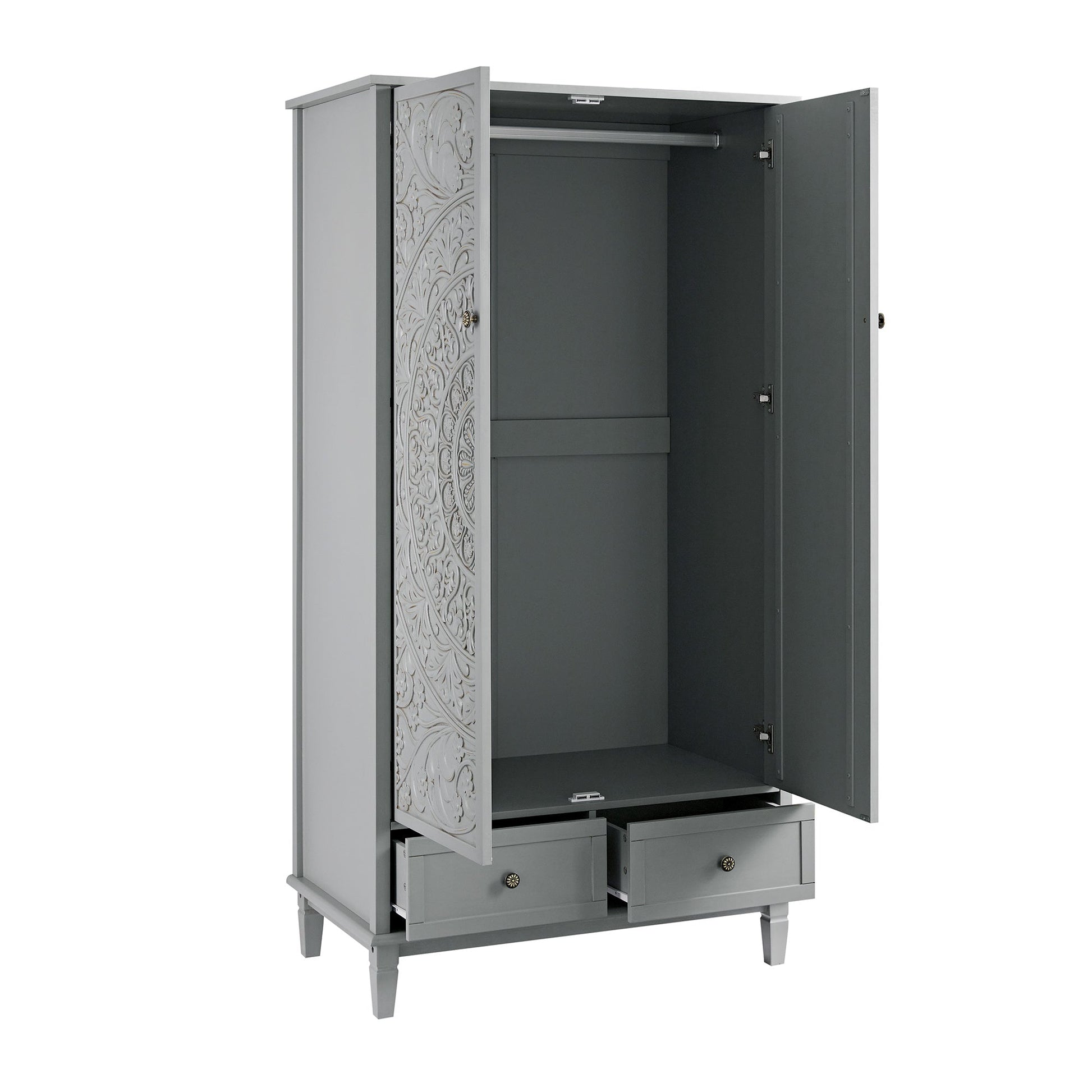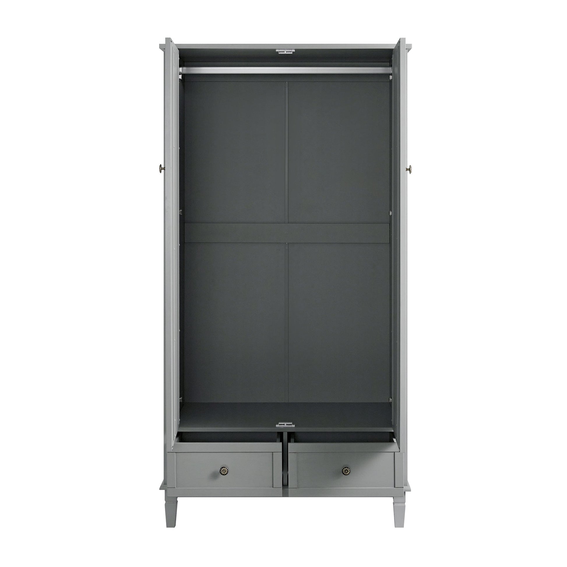 - Make a statement with your storage. The Chantilly Double Wardrobe in Mid Grey brings graceful impact to your bedroom, combining ornate craftsmanship with calm, tonal elegance.