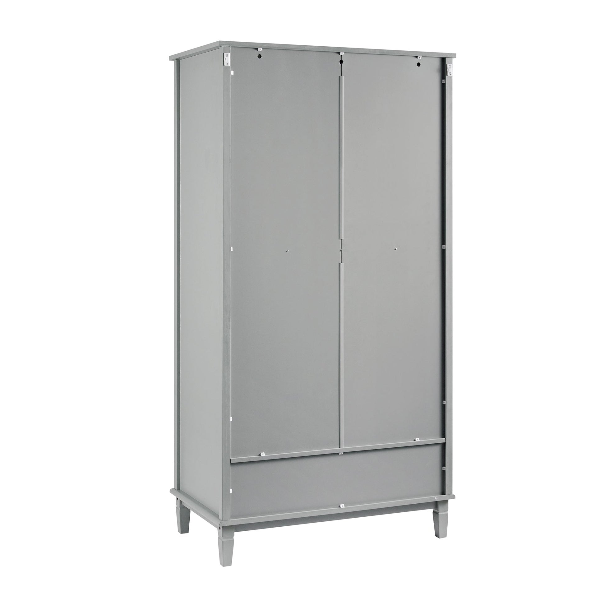 - Finished in a soft mid-grey with blue undertones and gentle edge distressing, it reimagines the traditional armoire with a modern twist.