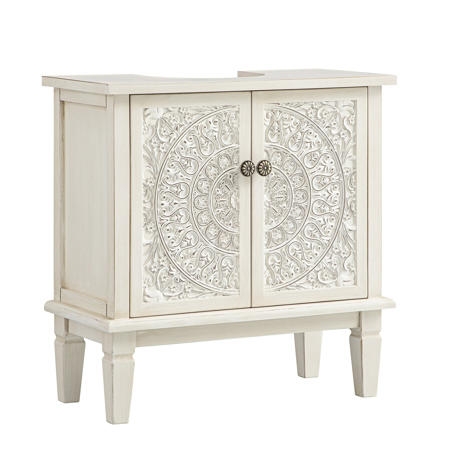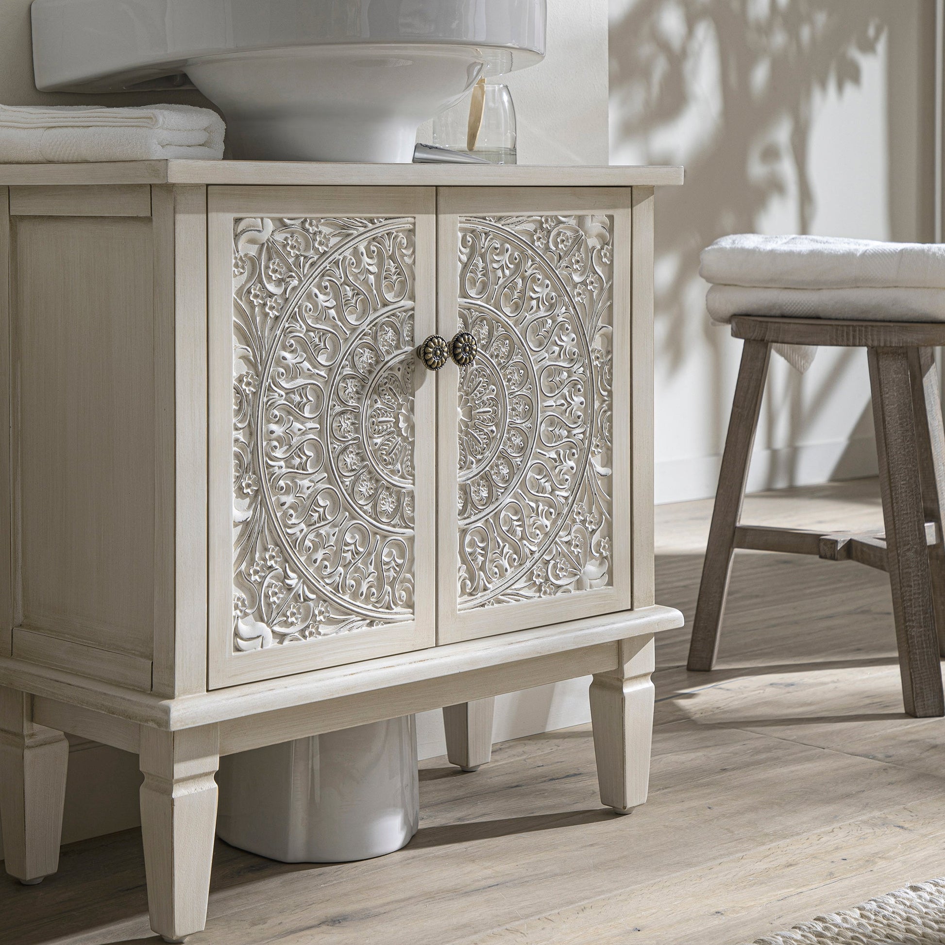 - Complete the look: Pictured with our Chantilly Whitewashed Carved Bathroom Undersink Unit is our matching Chantilly Whitewashed Carved Bathroom Cupboard, and Aurora Hand Braided Cream Jute Rug.