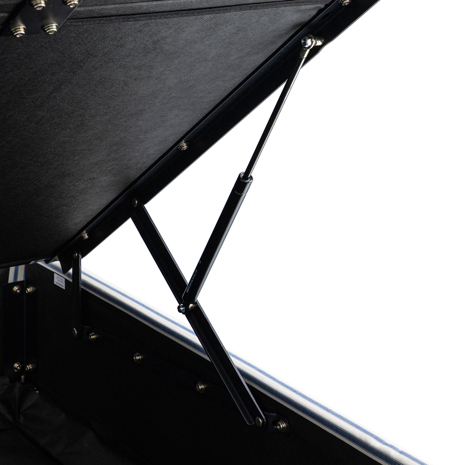 - Lift the bed frame with hydraulic mechanism to reveal hidden ottoman storage – spacious enough for spare bedding, off-season clothing or everyday clutter.