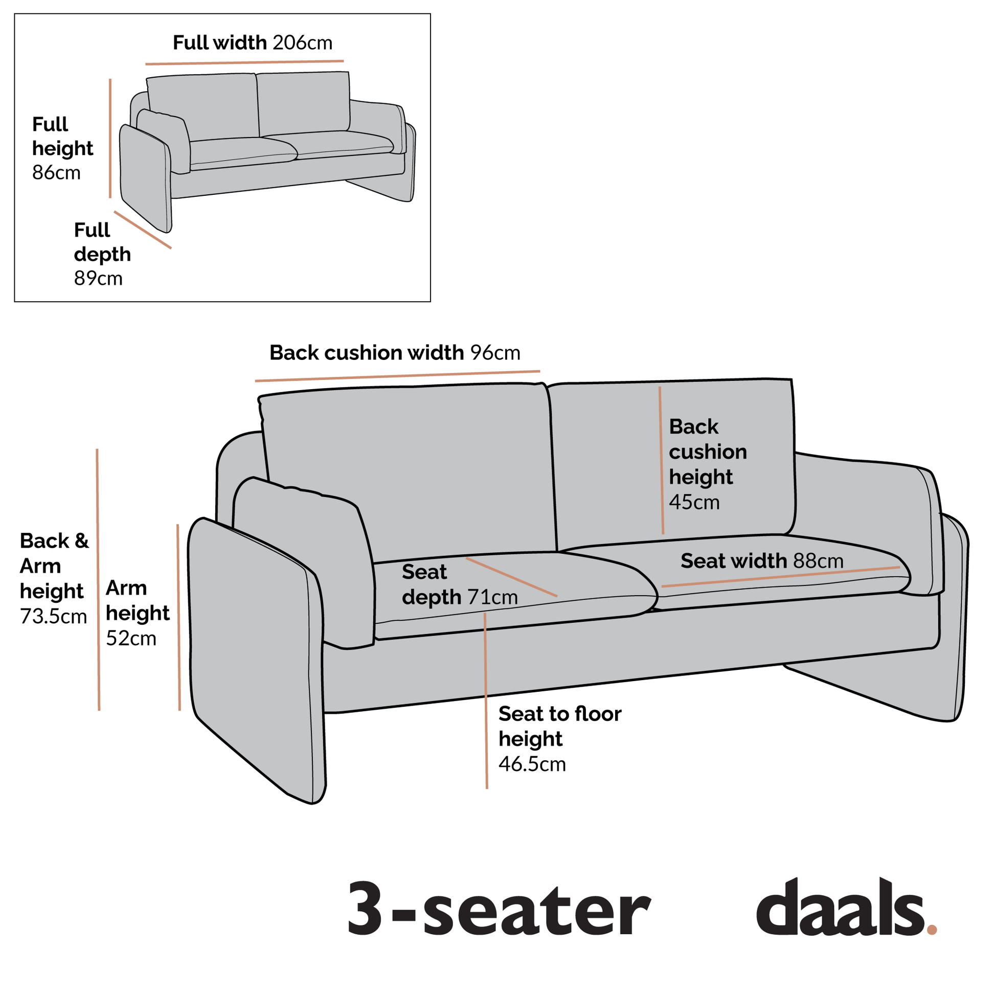 - 3-Seater sofa size: W 206 x D 89 x H 86 cm