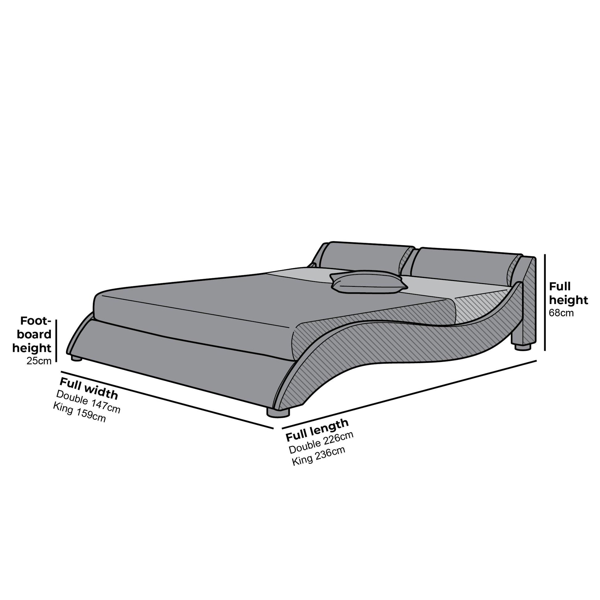 - 5FT King size: L 236 cm x W 159 cm x H 68 cm