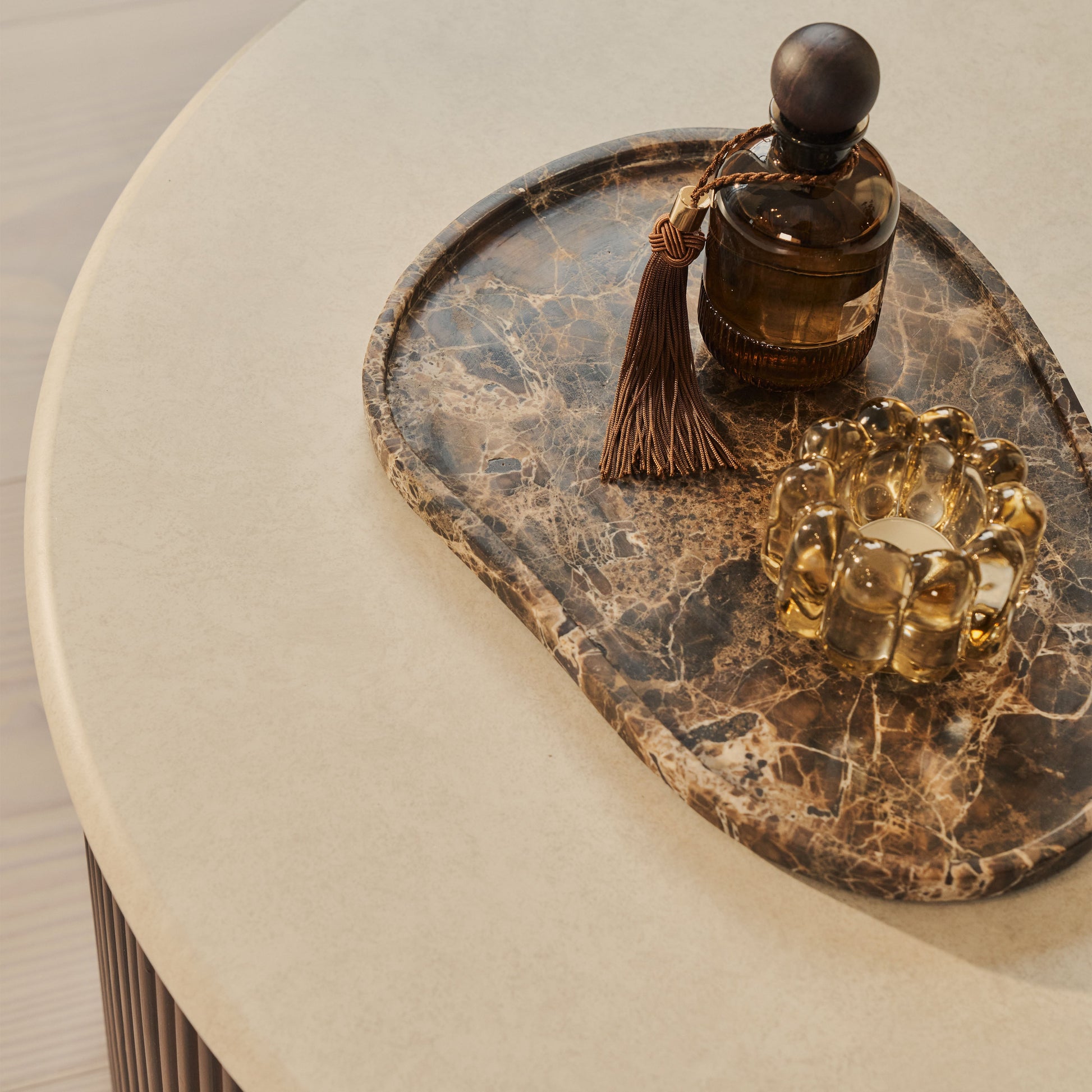 Make a bold design statement with the Cove round coffee table, where intricate ribbed texturing meets a pristine concrete surface. This commanding piece doesn't just occupy space, it commands it, delivering the sophisticated edge your interior has been waiting for and instantly elevating your home's aesthetic appeal.