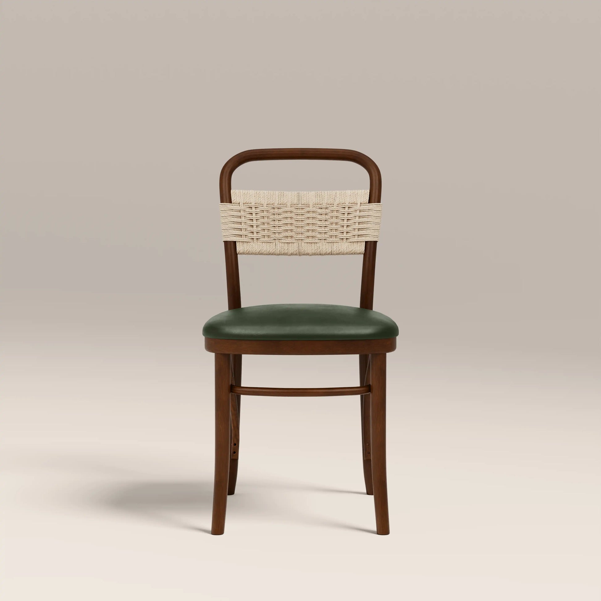 Daisy Wooden Dining Chair | Vintage Green Faux Leather & Walnut