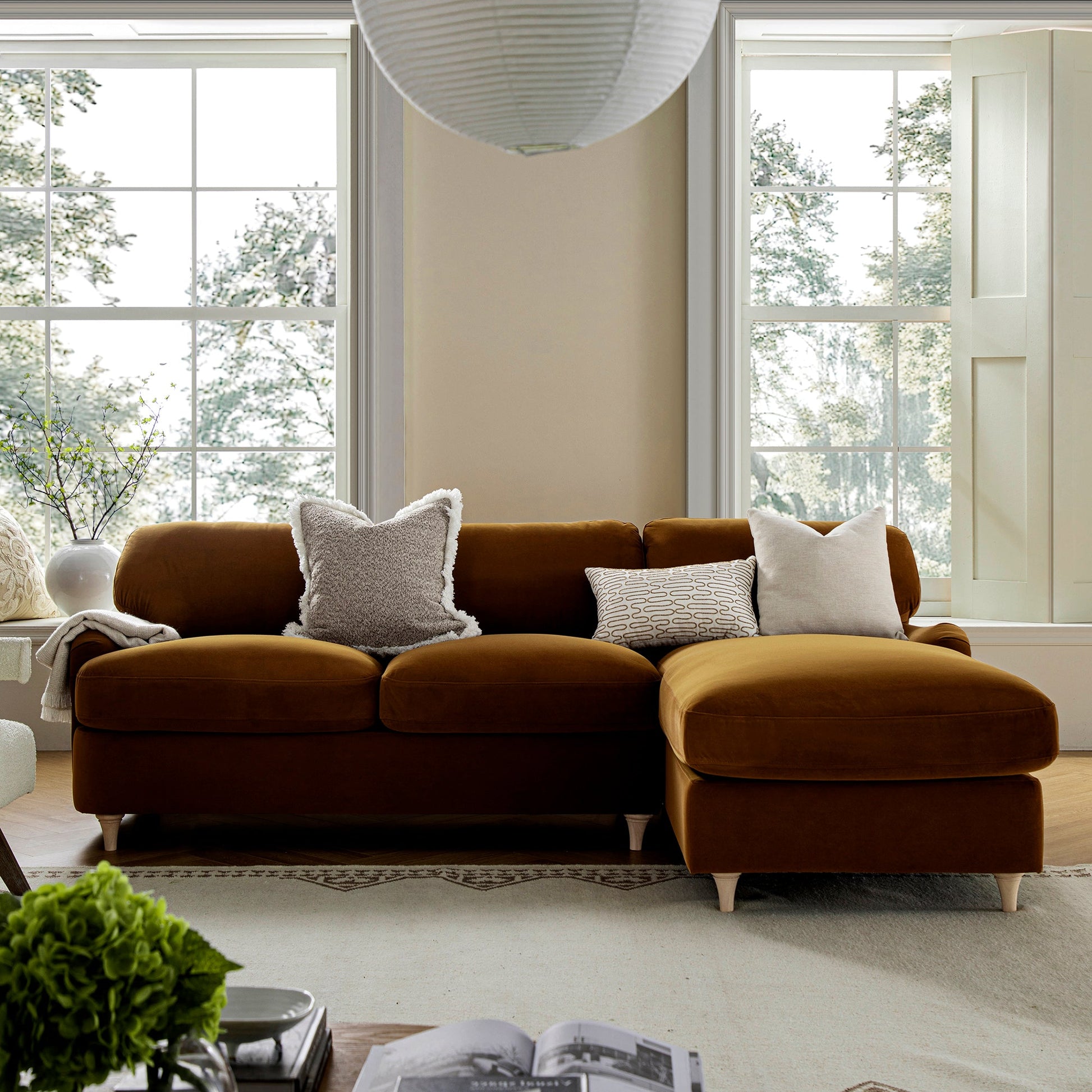 Daphnis Cinnamon Velvet Sofa Bed, Grande Chaise Sofa Right Hand Facing