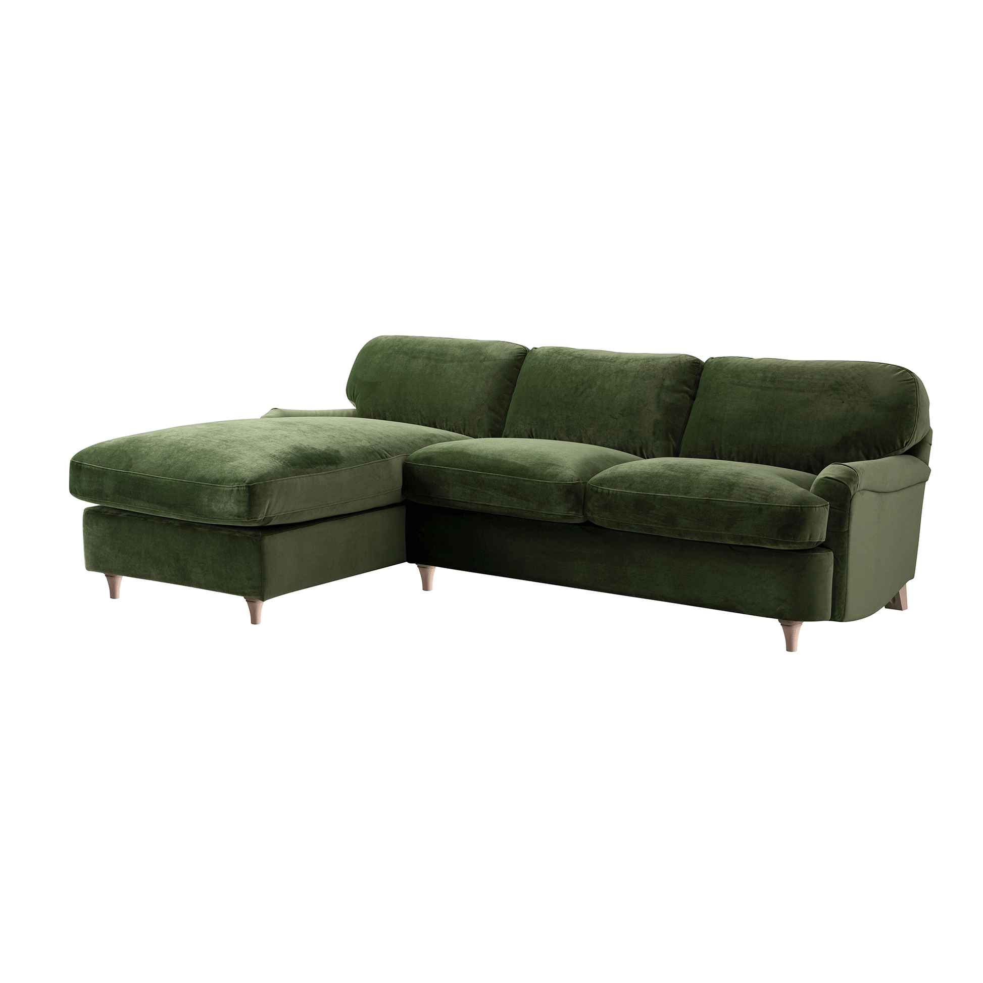 Daphnis Fern Green Velvet Sofa Bed, Grande Chaise Left Hand Facing