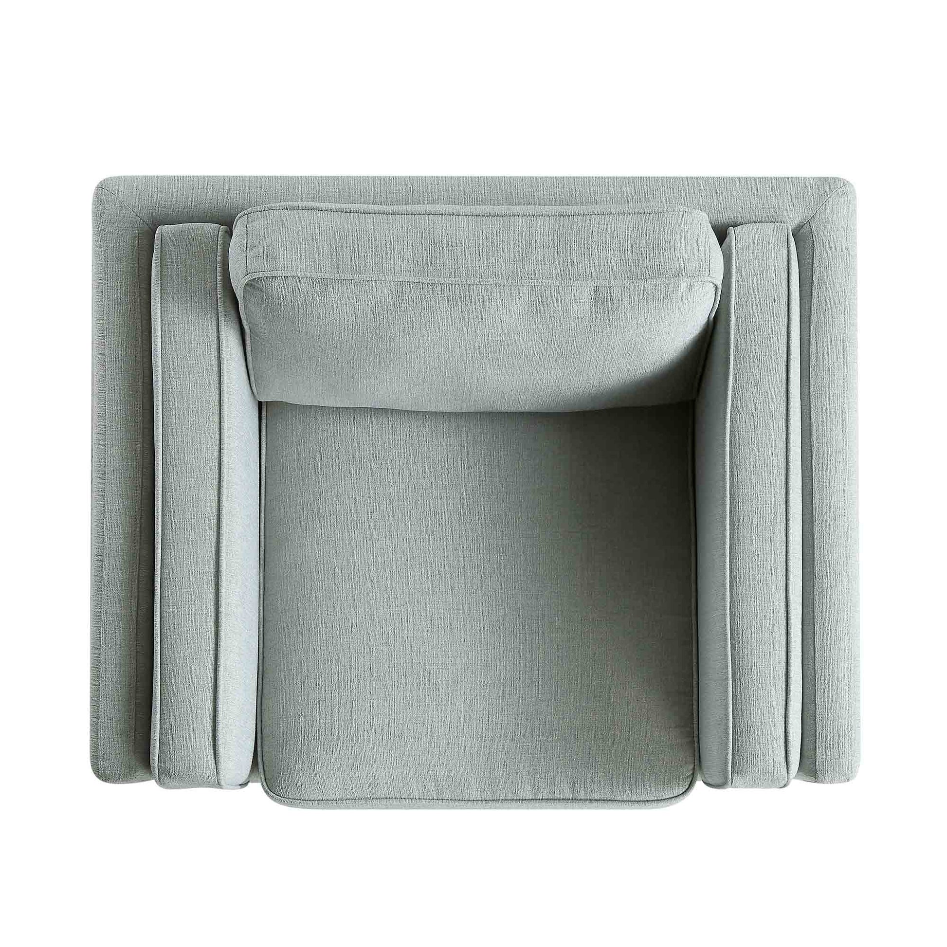 - Upholstered in premium textured fabric composed of chenille yarn boasting two tone details