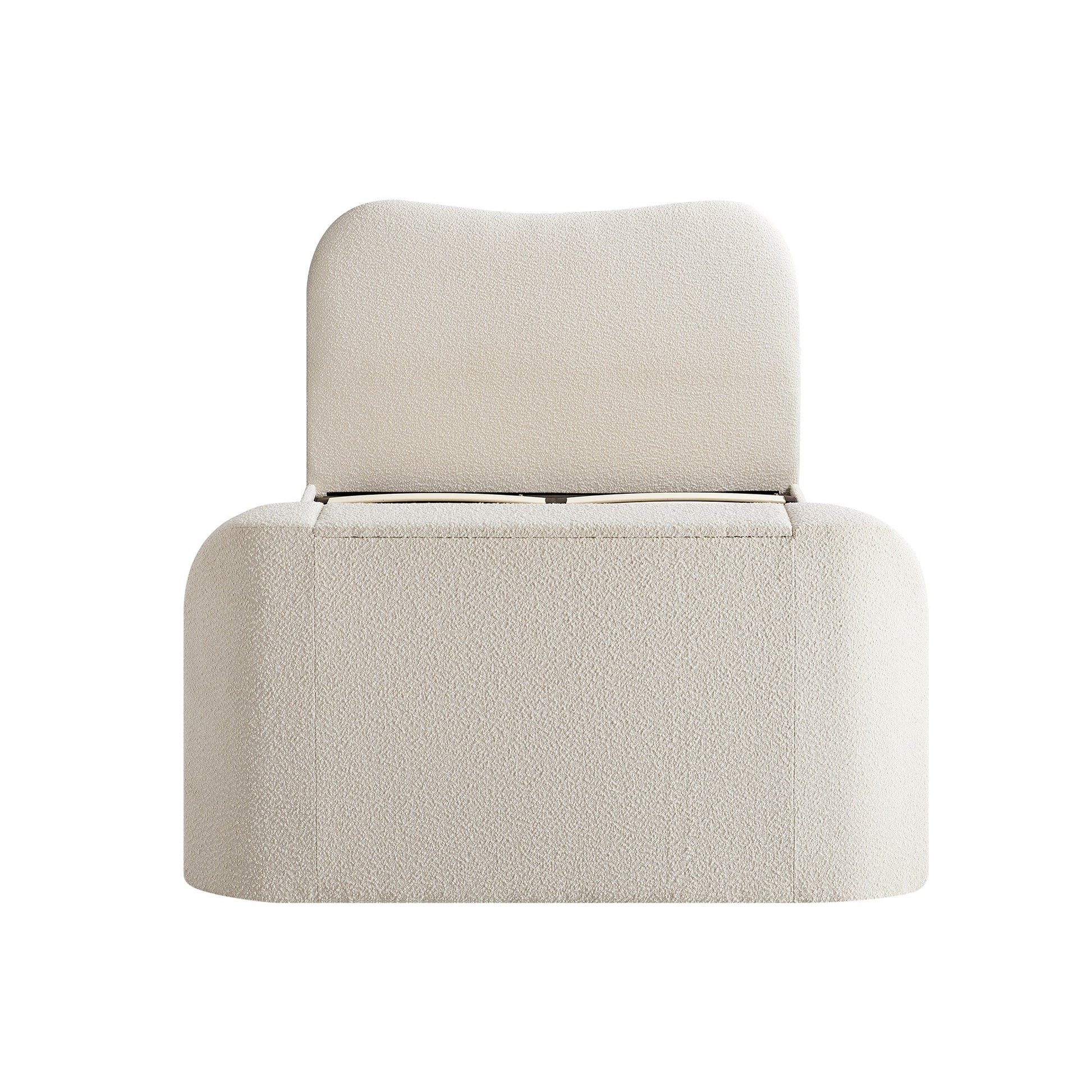 - Underneath, a spacious ottoman base lifts easily to reveal hidden storage space.