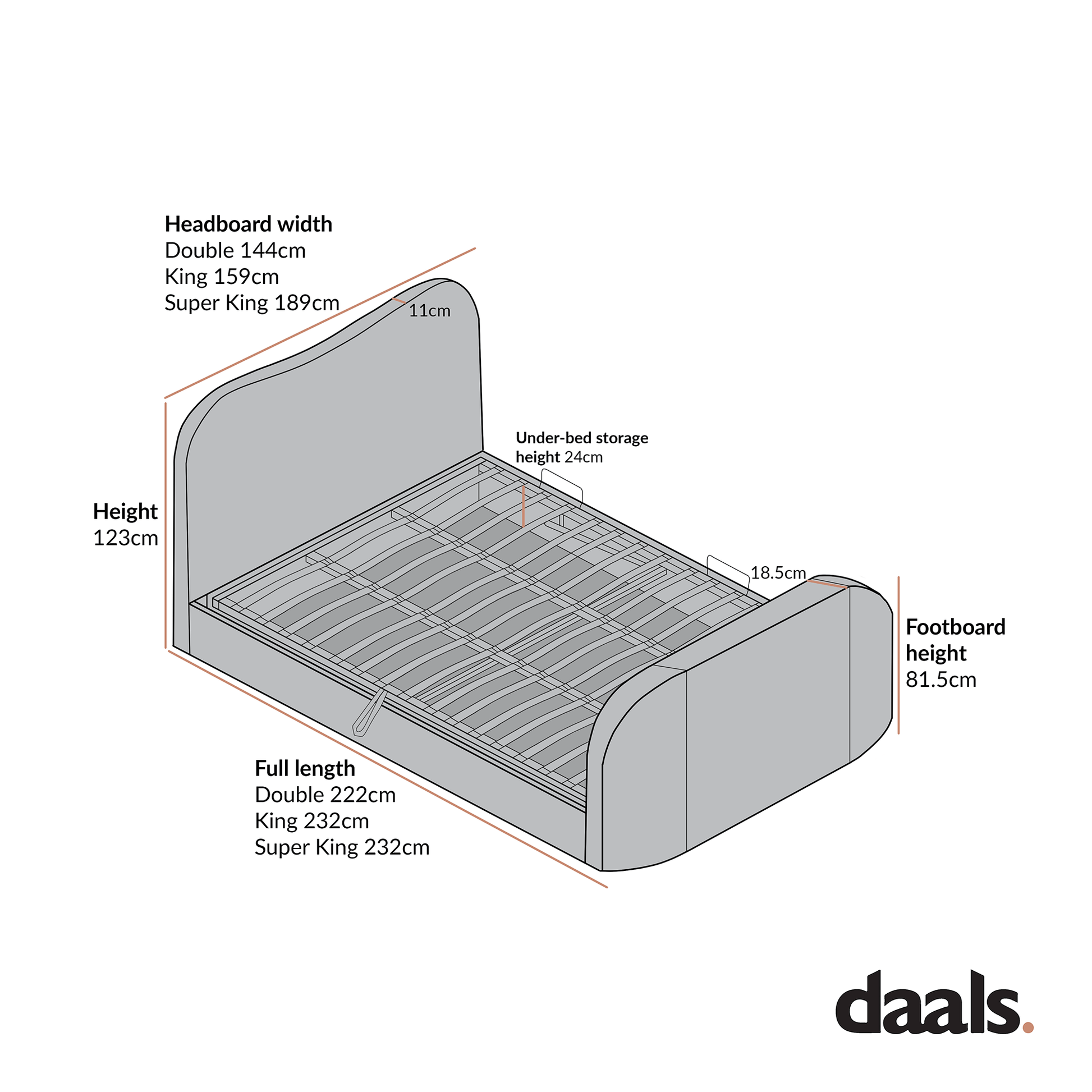 - 6FT Super King: W 189 x D 232 x H 123 cm