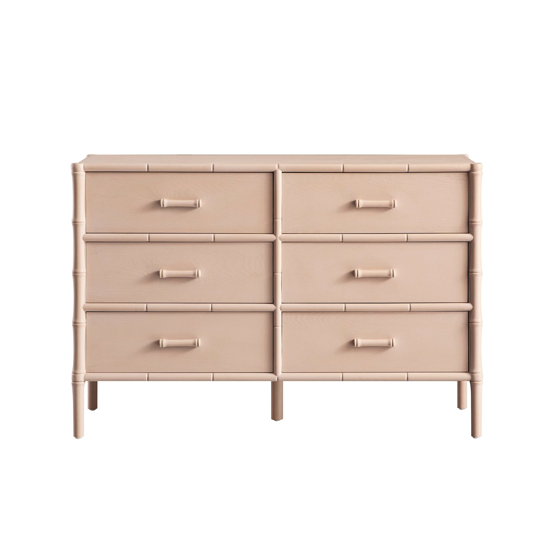 Elstowe Faux Bamboo 6-Drawer Chest, Nude Pink