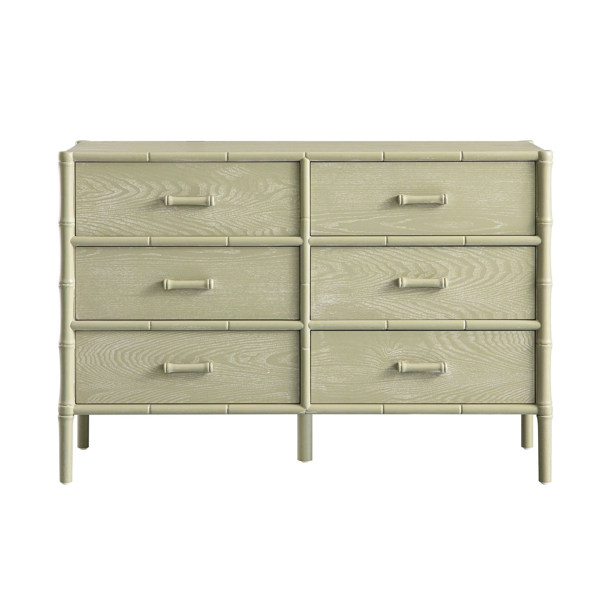 Elstowe Faux Bamboo 6-Drawer Chest, Sage Green