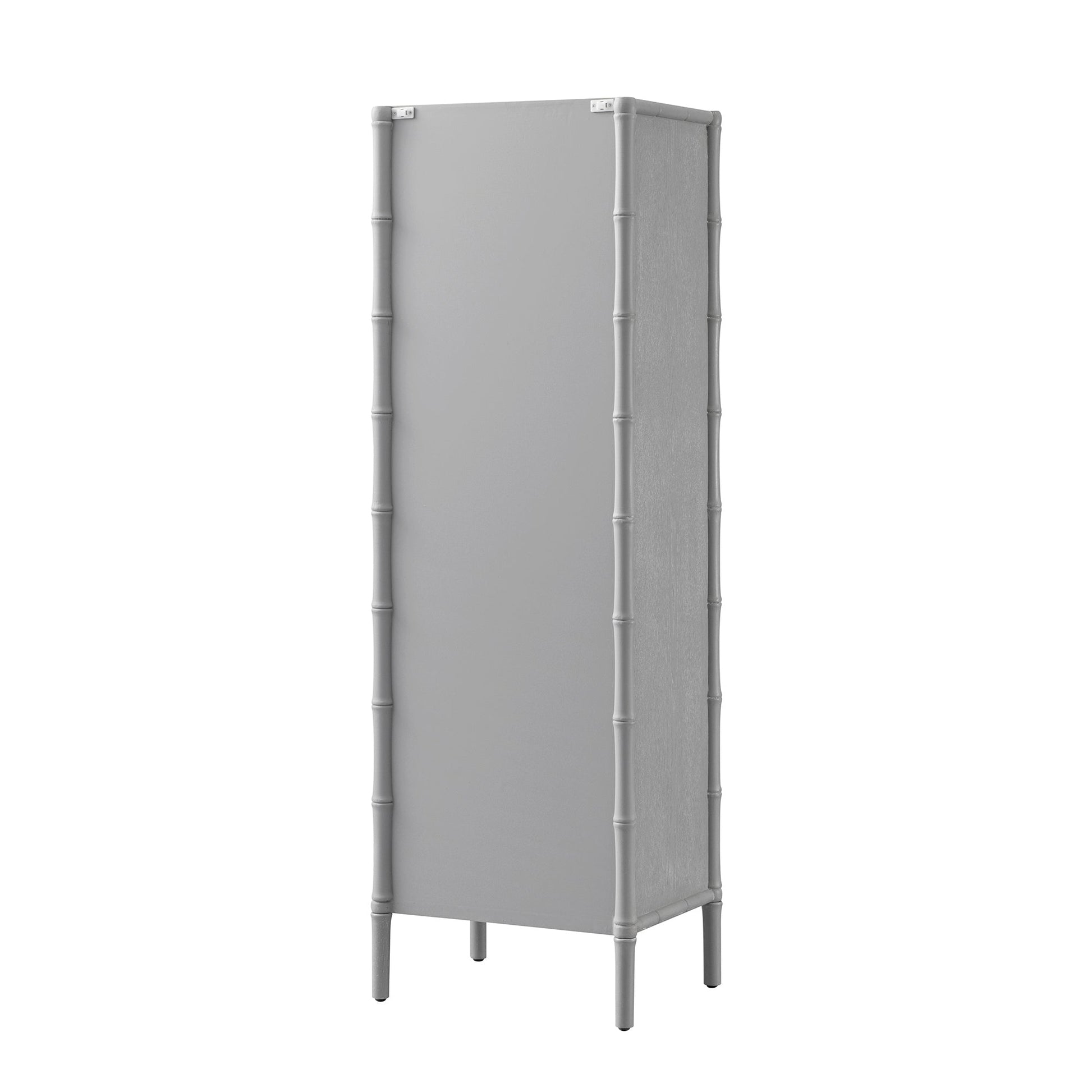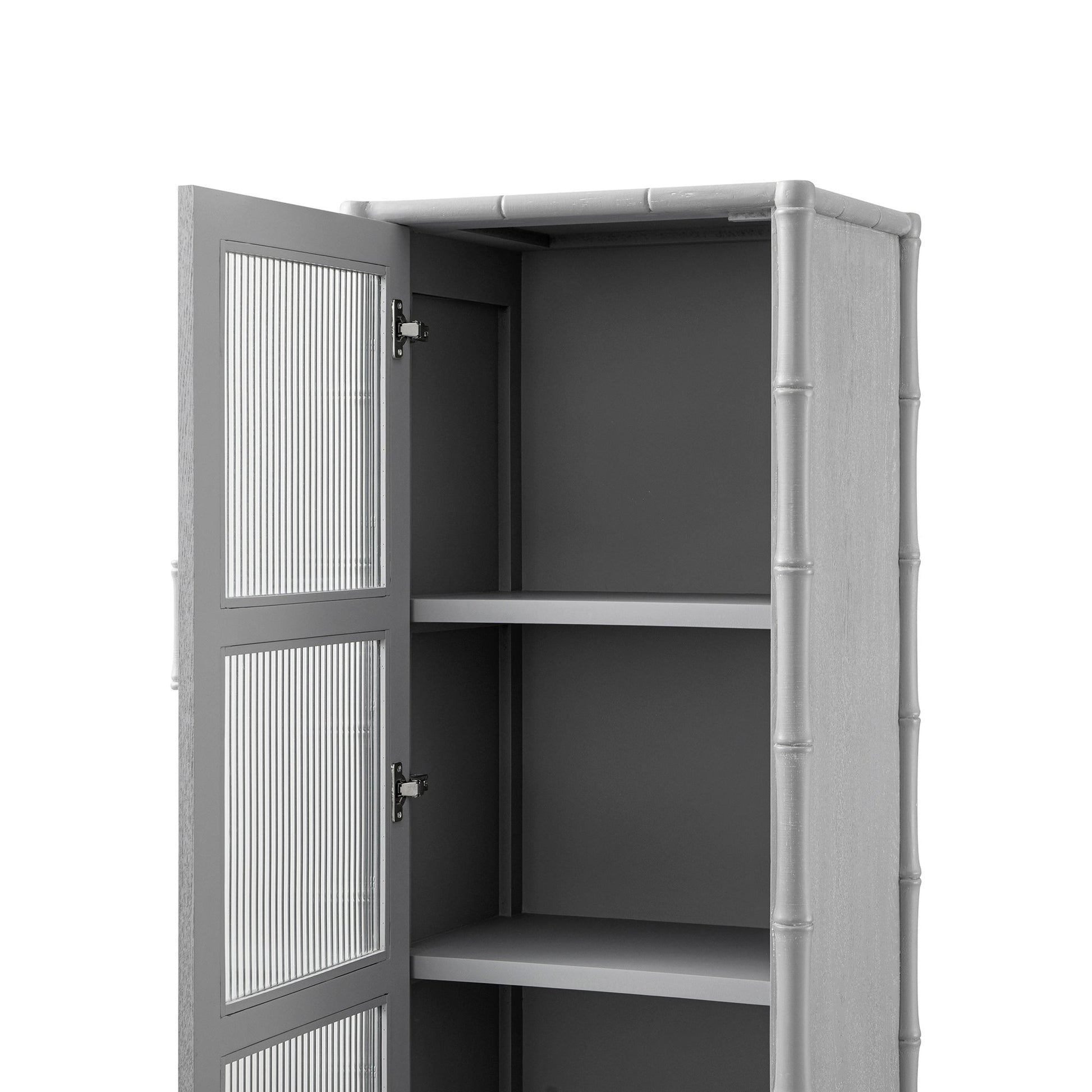 Elstowe Faux Bamboo and Fluted Glass 1-Door Cabinet, Warm Grey