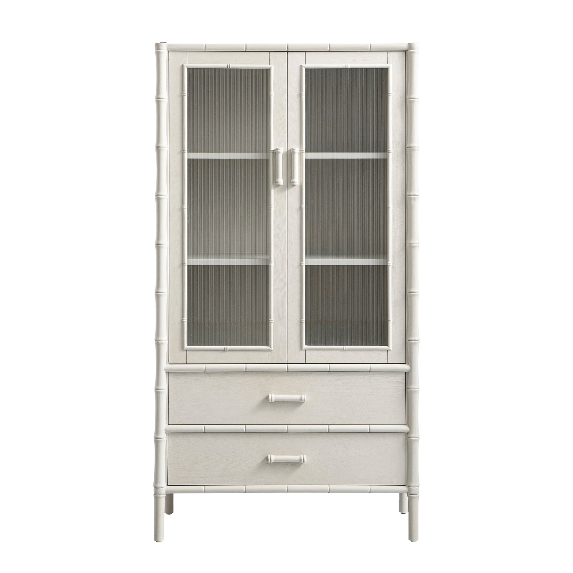 Elstowe Faux Bamboo and Fluted Glass 2-Door Cabinet, Shaded White