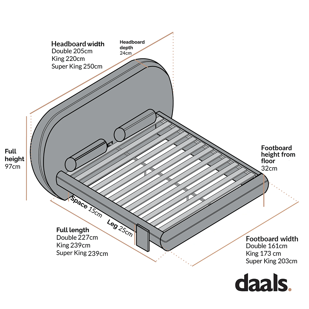 - 4FT6 Double: W 205 x L 227 x H 97 cm