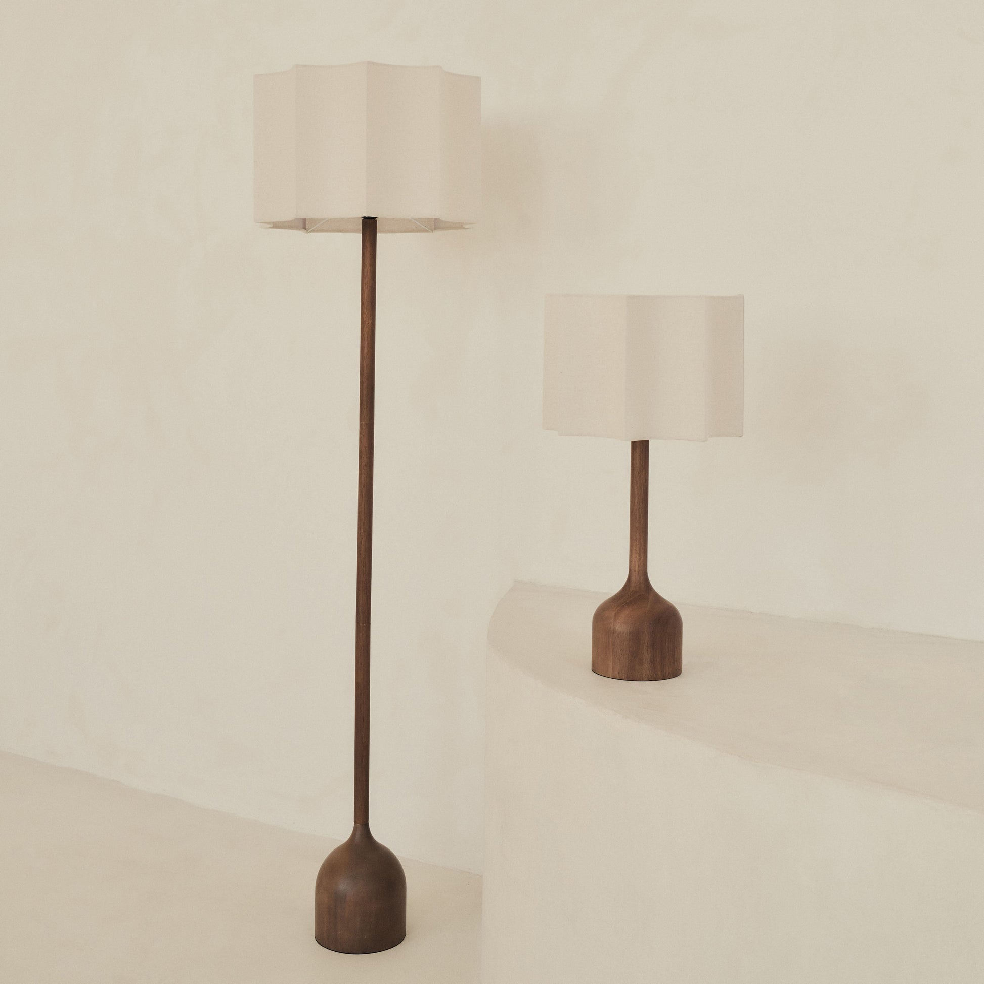 Indulge in the rustic charm of the Esme Floor Lamp. Crafted with a rich dark wood base and finished with a neutral linen inverted scallop style shade, this floor lamp creates a soft and inviting ambience. Perfect for any space in need of a touch of warmth and charm. Elevate your interior with this elegant and exclusive piece.