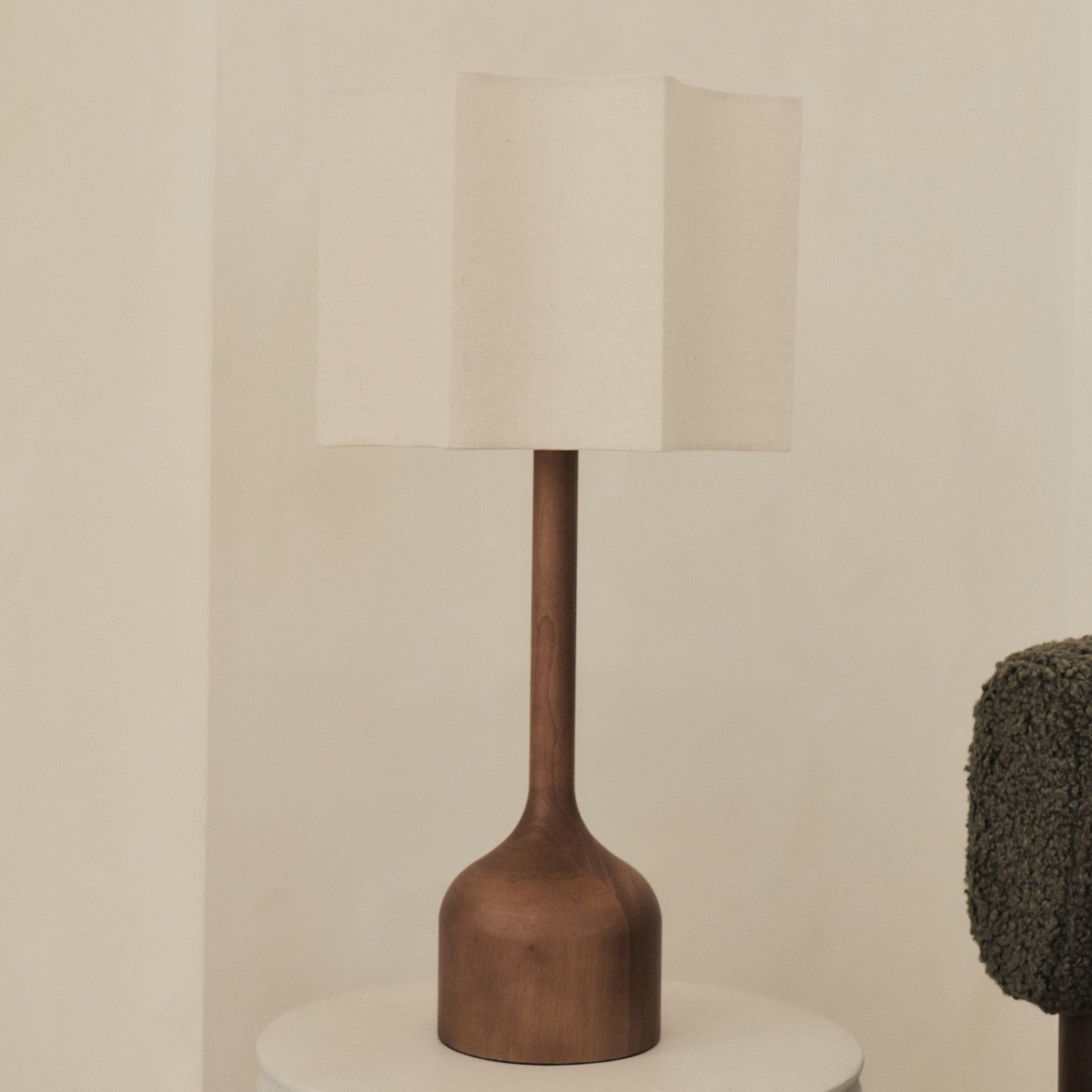 Indulge in the rustic charm of the Esme Table Lamp. Crafted with a rich dark wood base and finished with a neutral linen inverted scallop style shade, this lamp creates a soft and inviting ambience. Perfect for any space in need of a touch of warmth and charm. Elevate your interior with this elegant and exclusive piece.