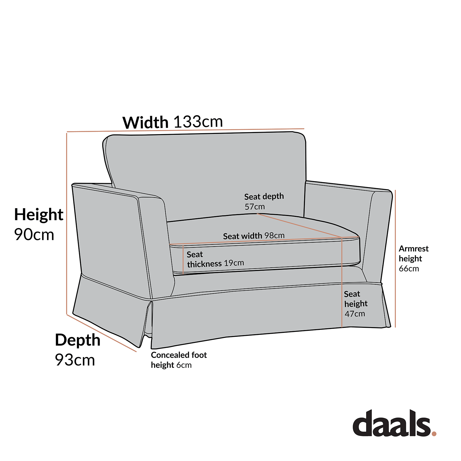 - Loveseat size: W 133 x D 93 x H 90 cm.