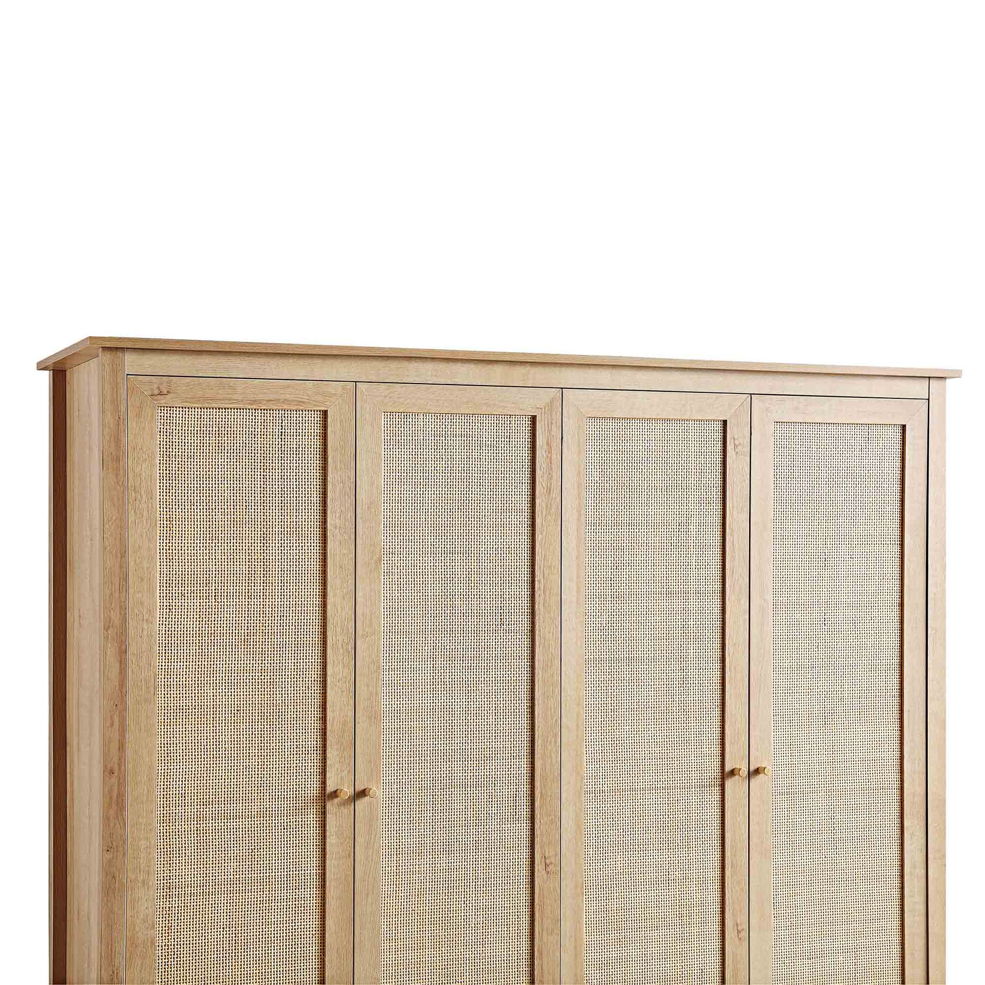 Frances Rattan 4-Door Wardrobe with 2 Drawers, Natural