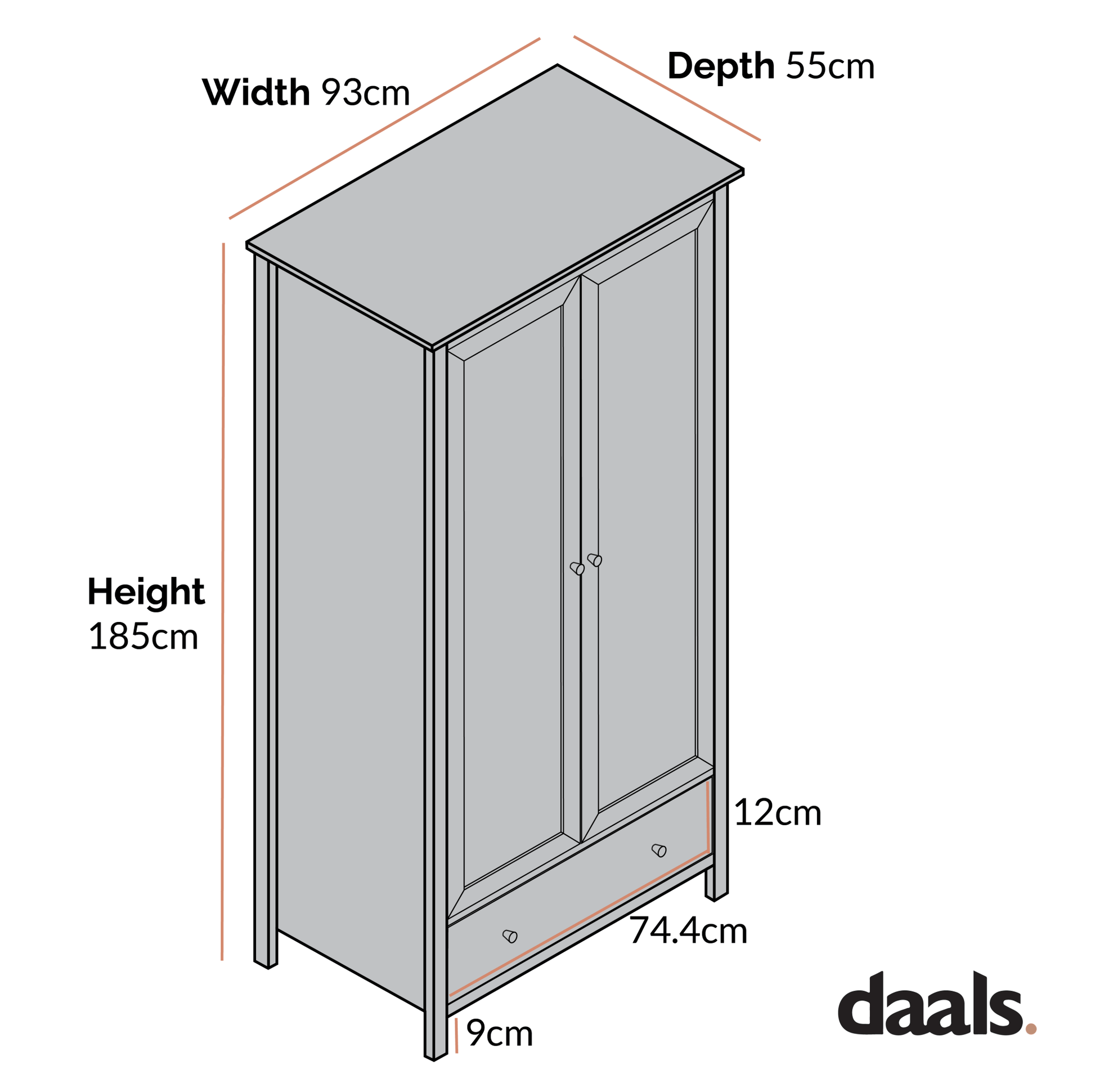 - Inside there are 2 metal hanging rails and a deep drawer for more storage space.