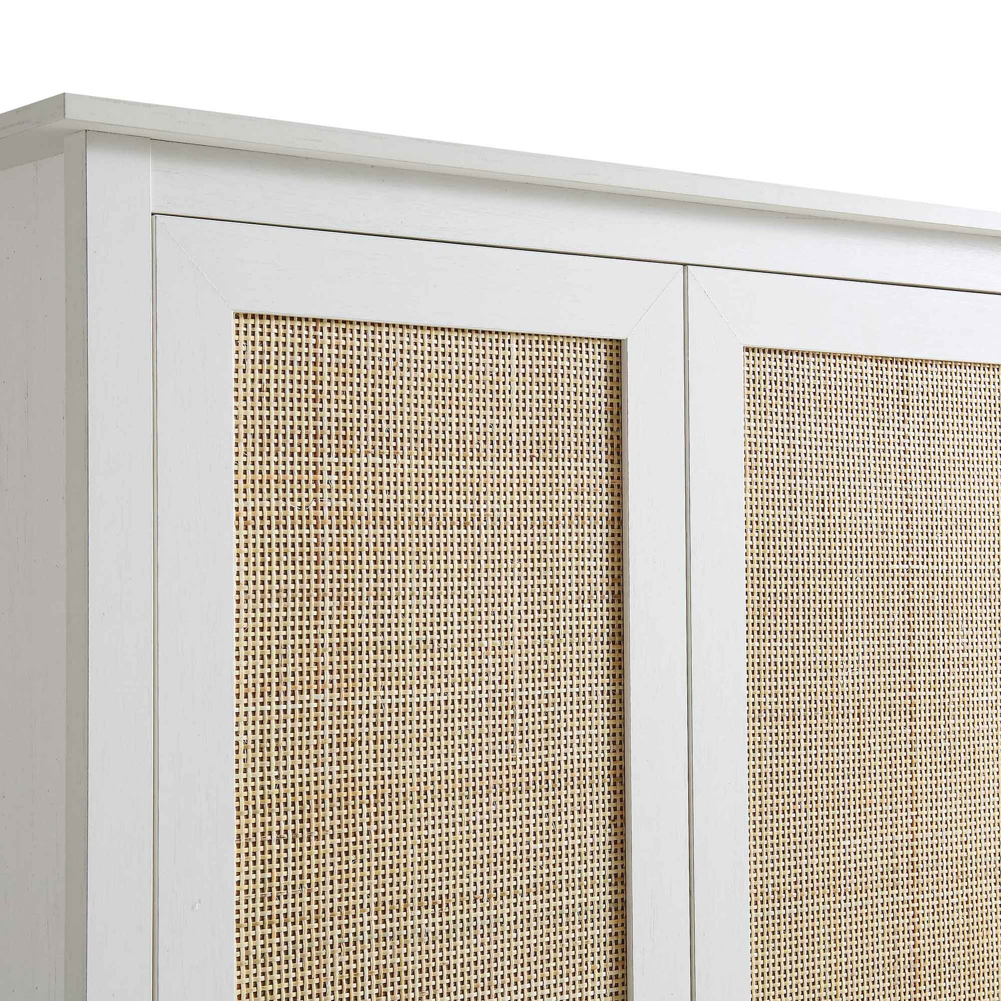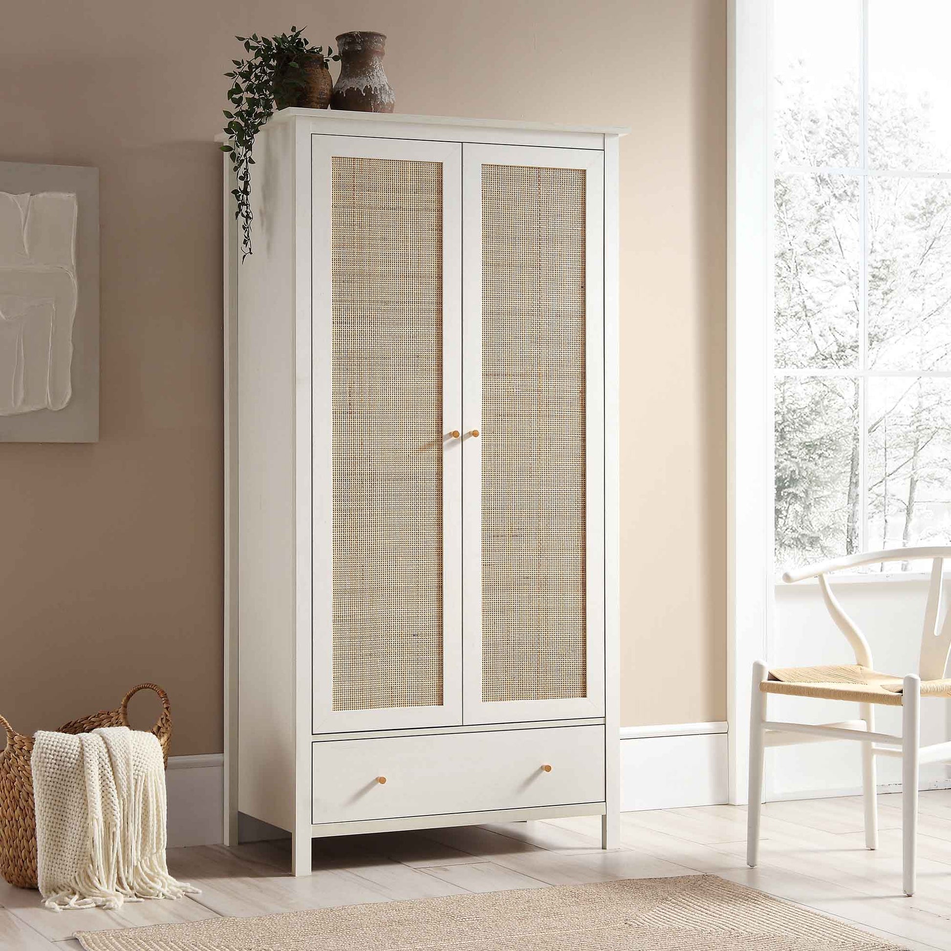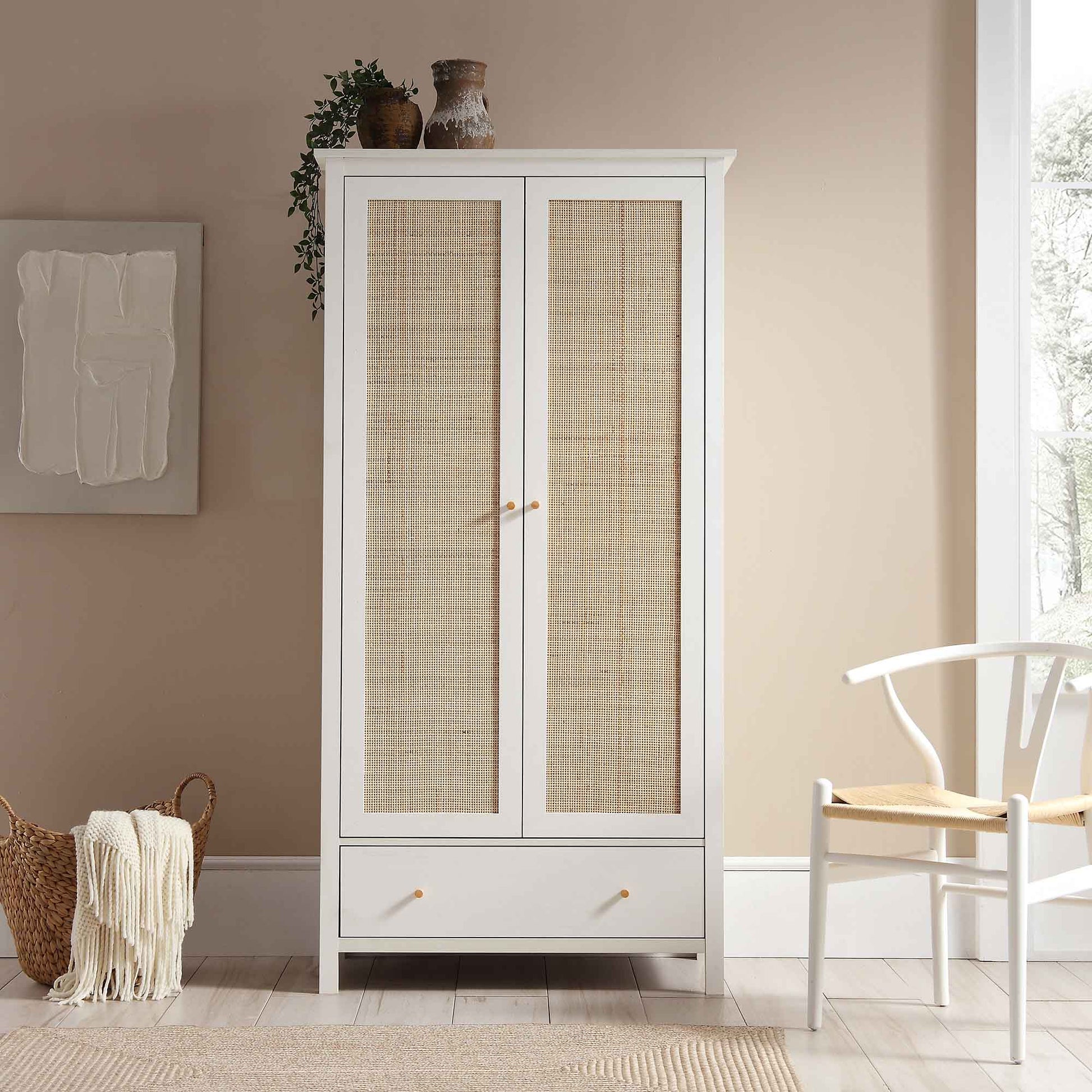 Frances Rattan Double Wardrobe with 1 Drawer, White