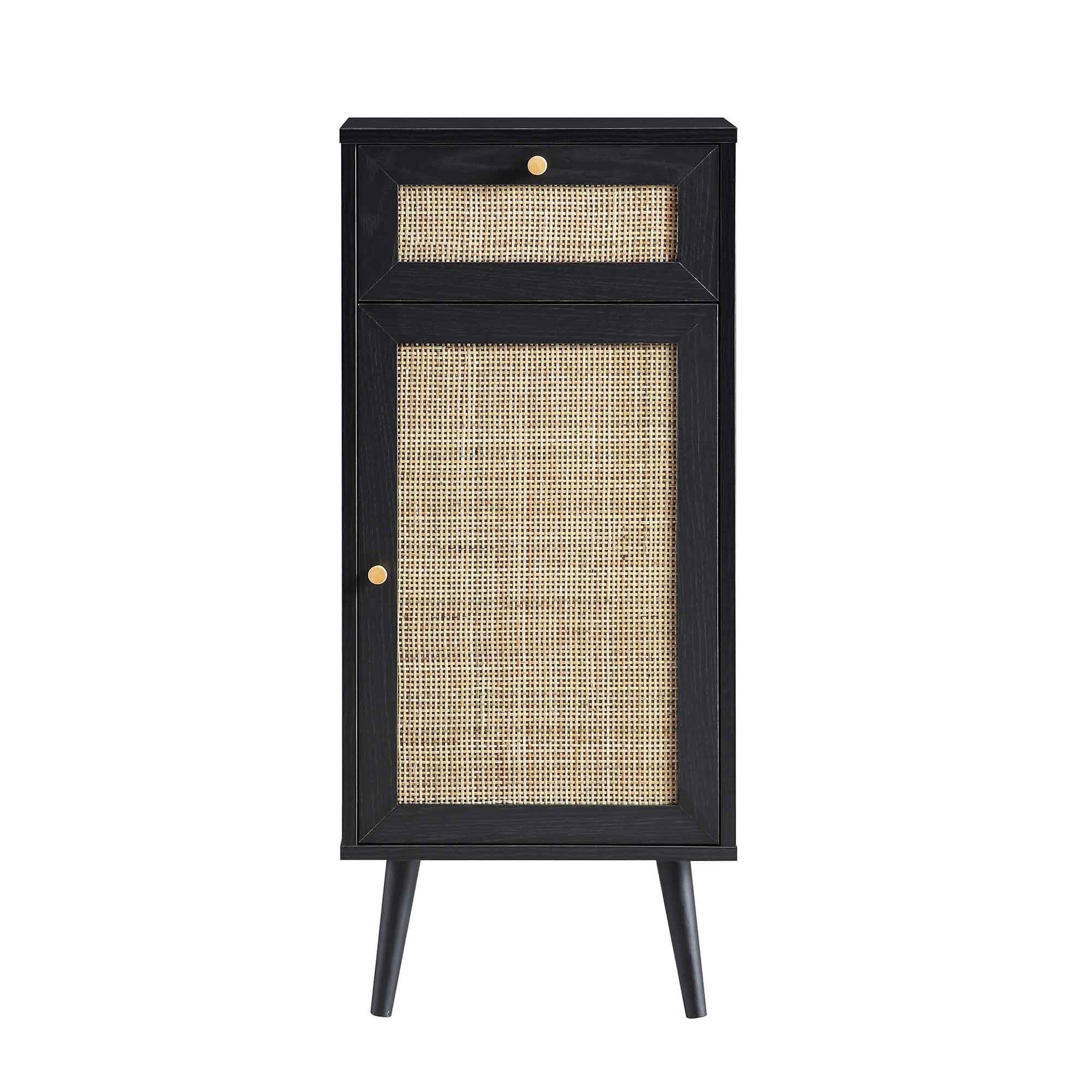 - Our Frances Woven Rattan 1-Door Cabinet is designed with a beautiful natural woven rattan door as well as a drawer, giving ample amounts of discreet storage