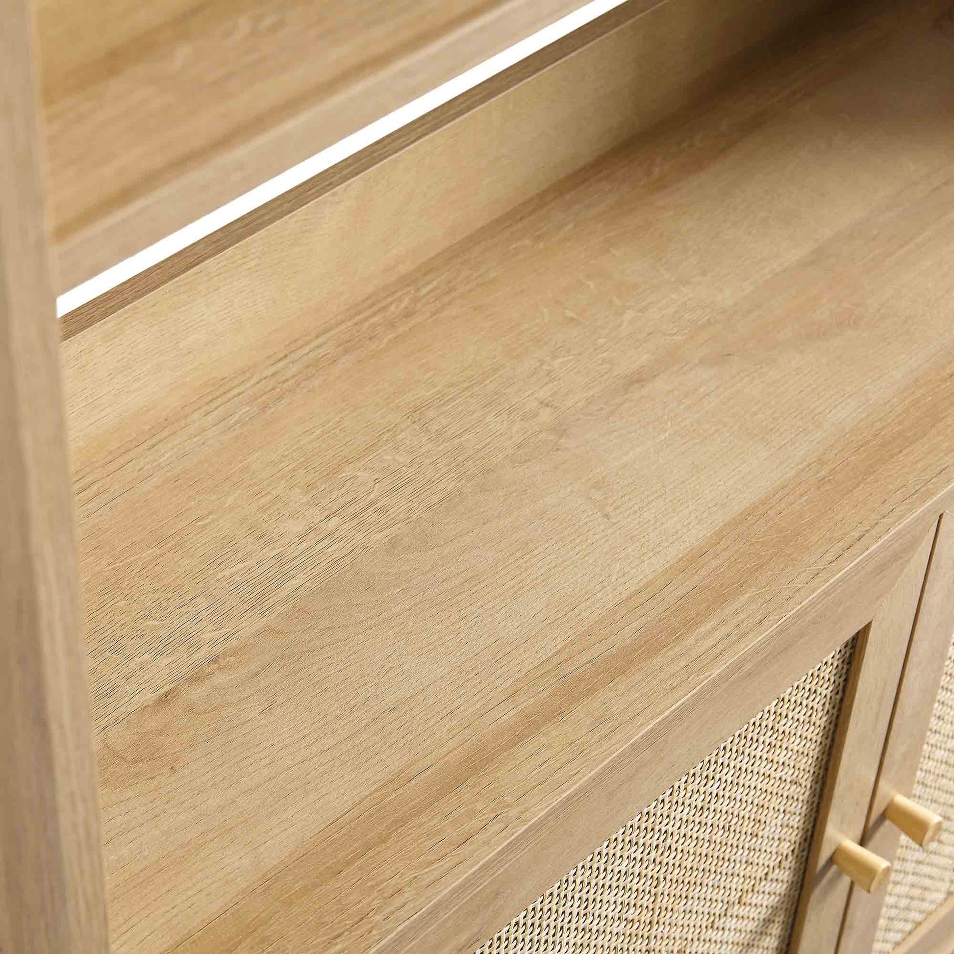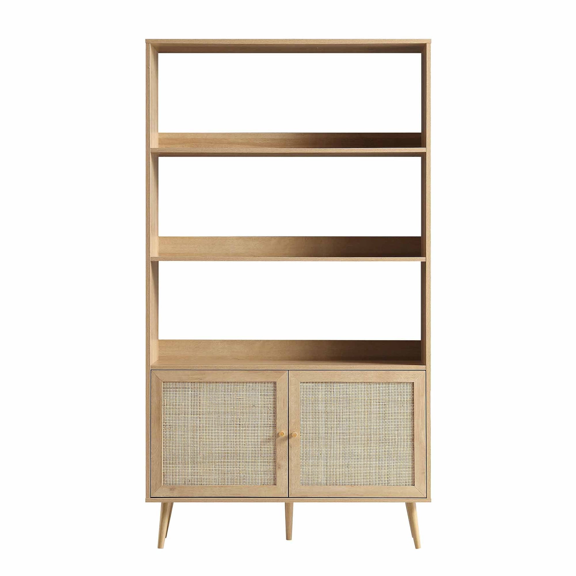 Frances Woven Rattan Tall Bookcase with Doors, Natural