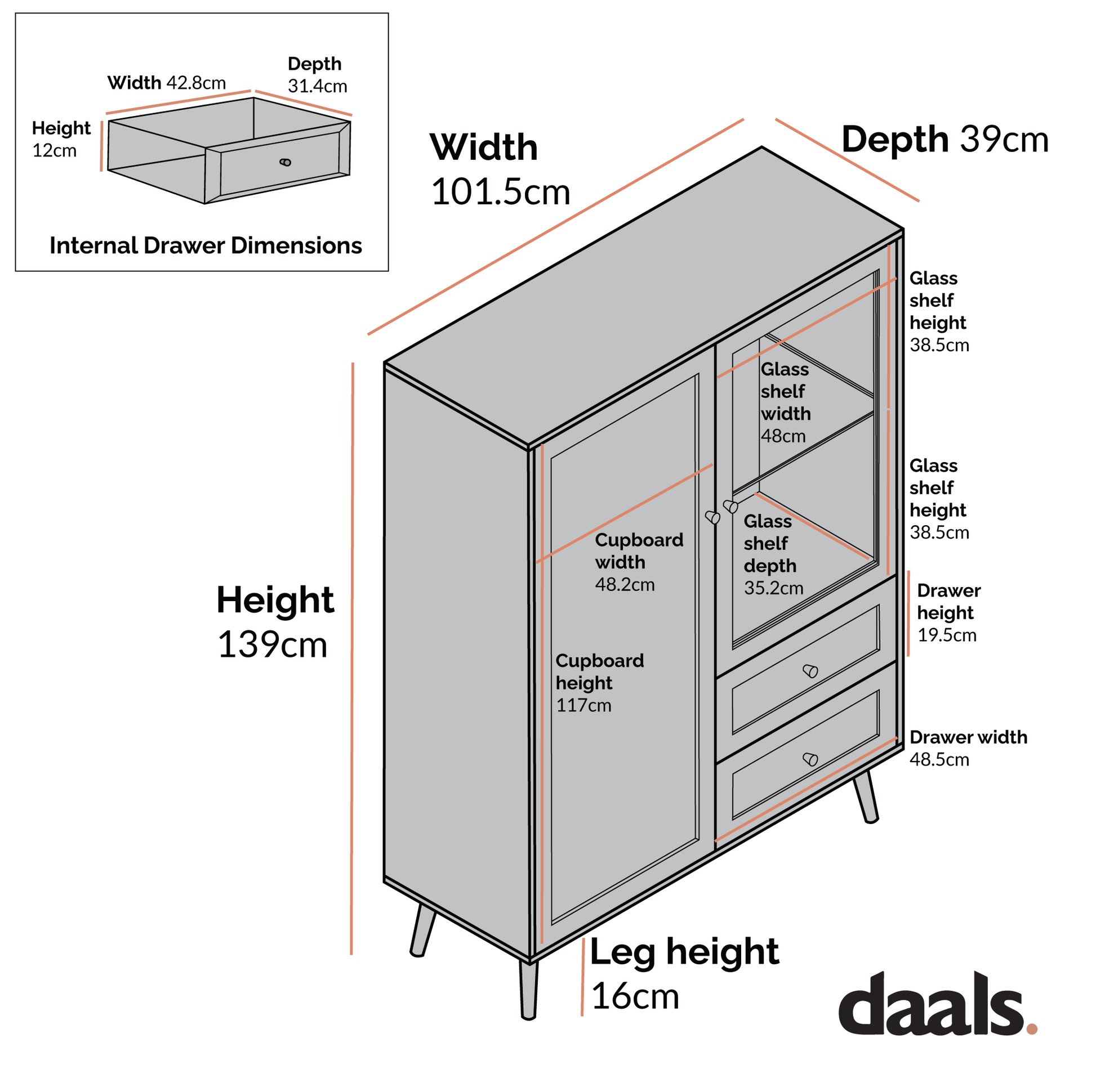 - Cupboard internal size (incl. all shelves): W 48.2 x D 35.2 x H 117 cm