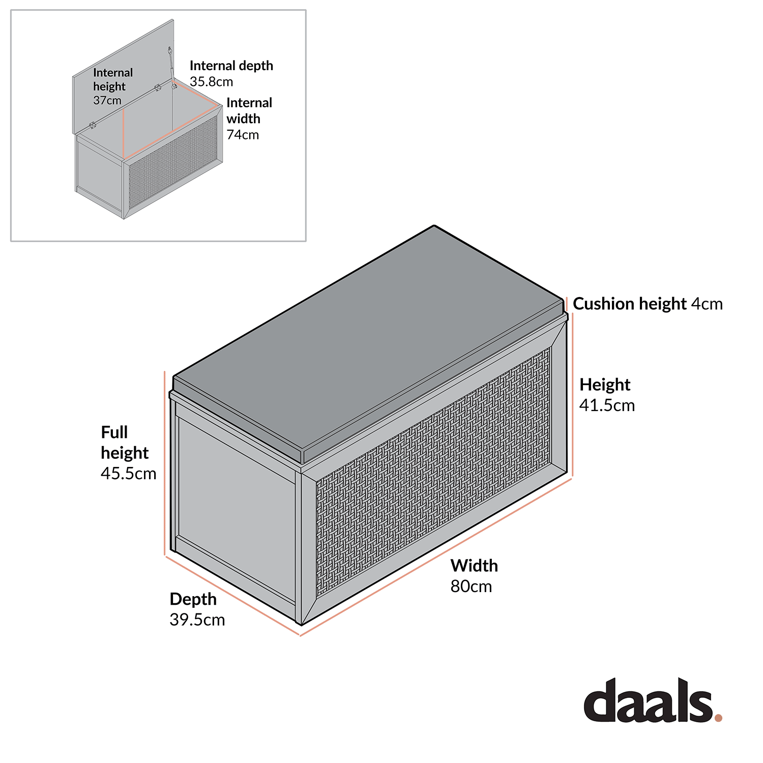 - Internal storage space: W 74x D35.8 x H 37 cm