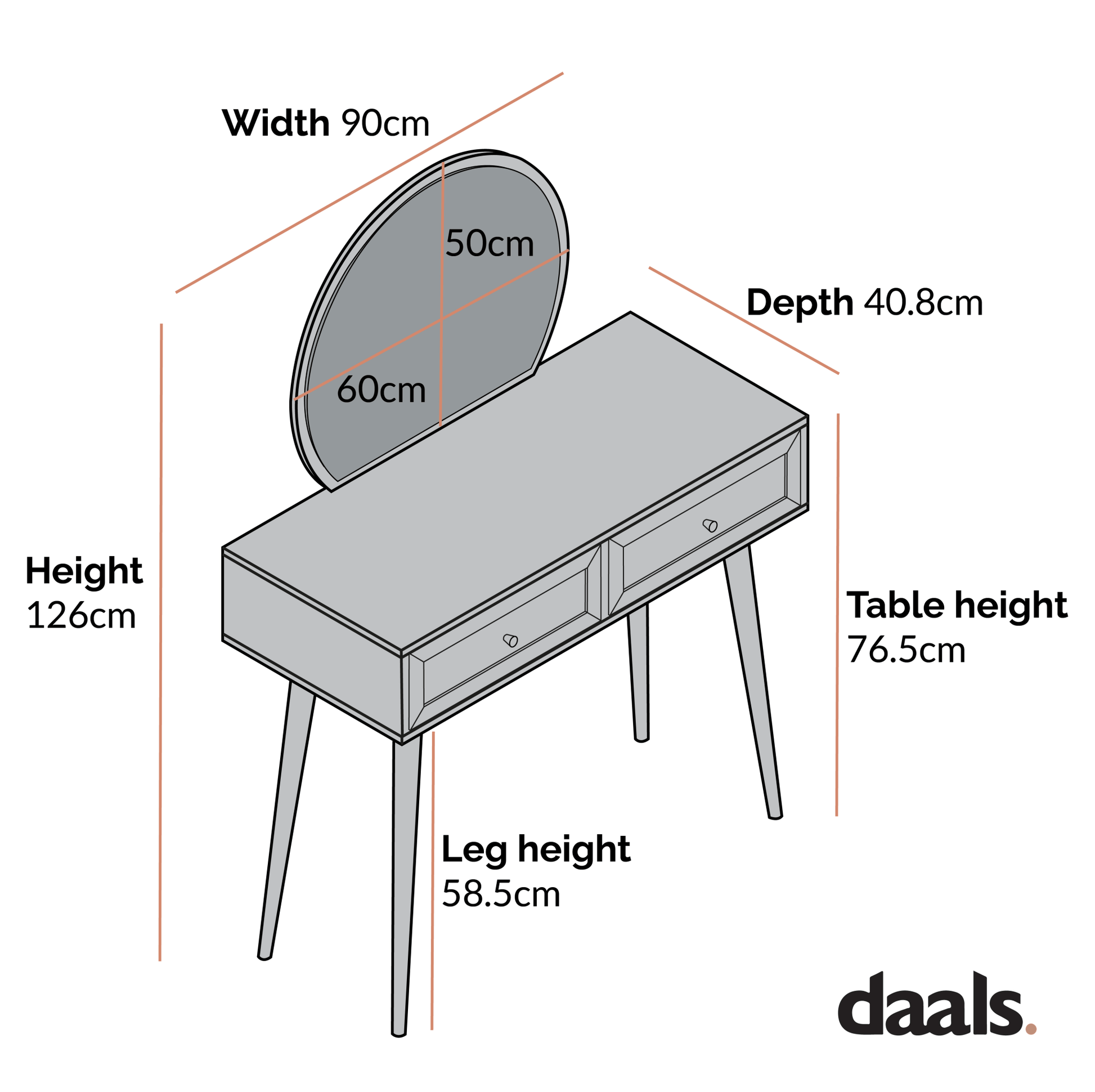 - The dressing table offers 2 spacious drawers for practical storage solution.