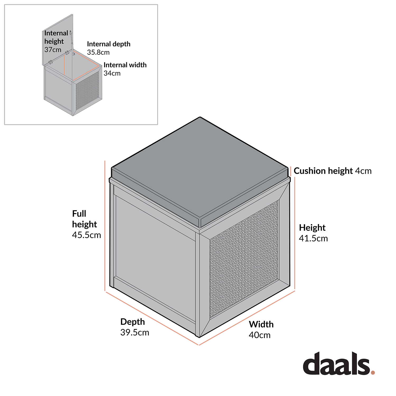 - Internal storage size: W 34 x D 35.8 x H 37 cm