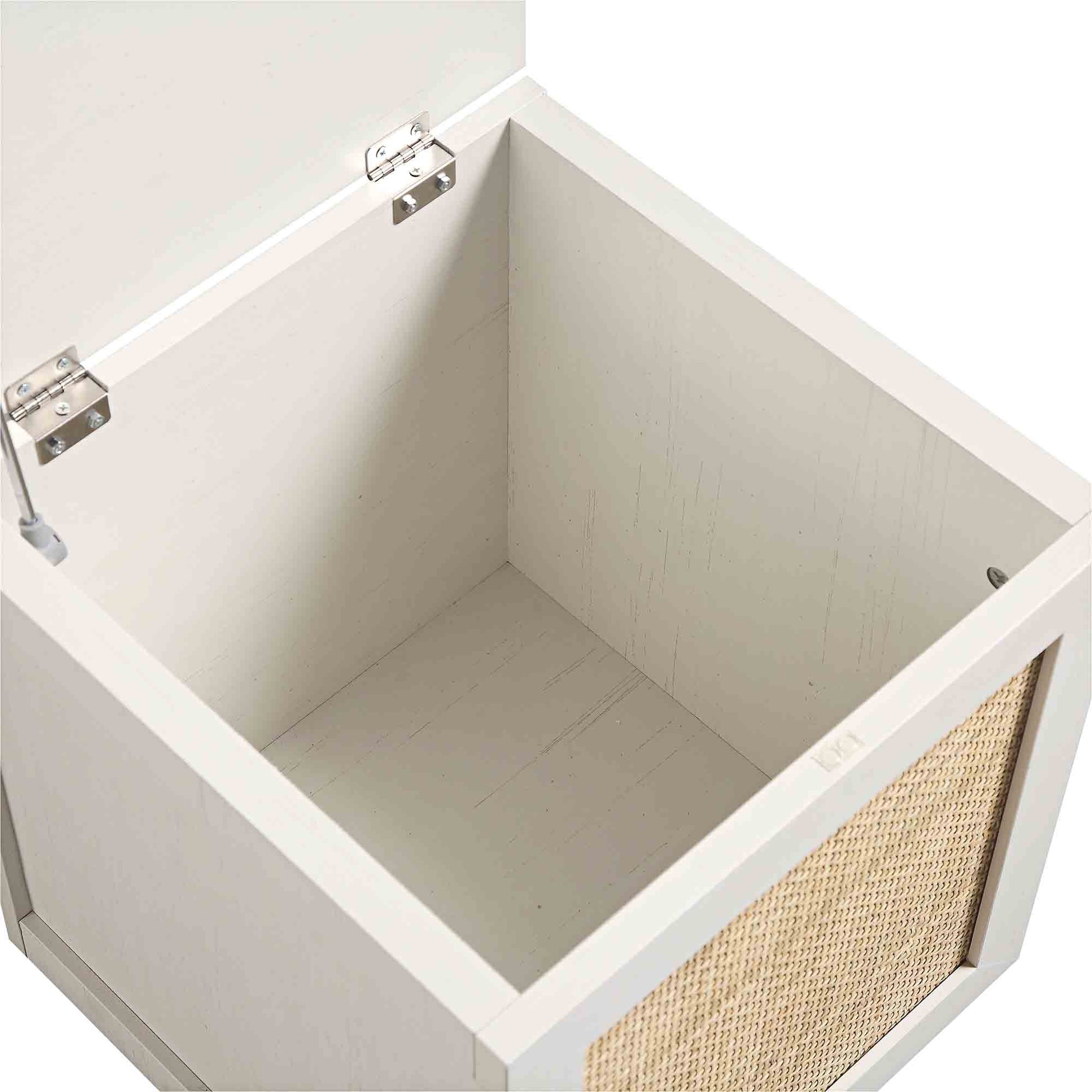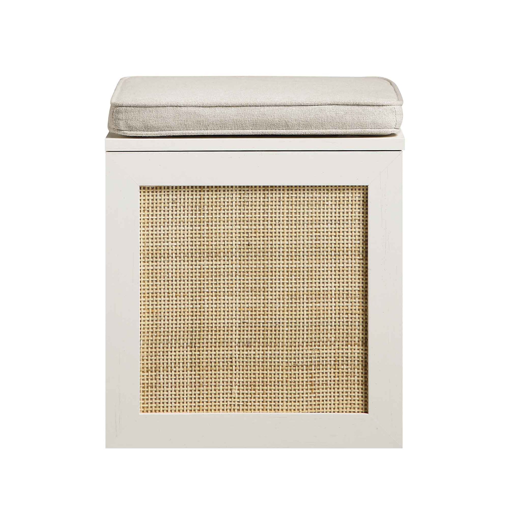 Frances Woven Rattan Single Storage Stool with Cushion, White