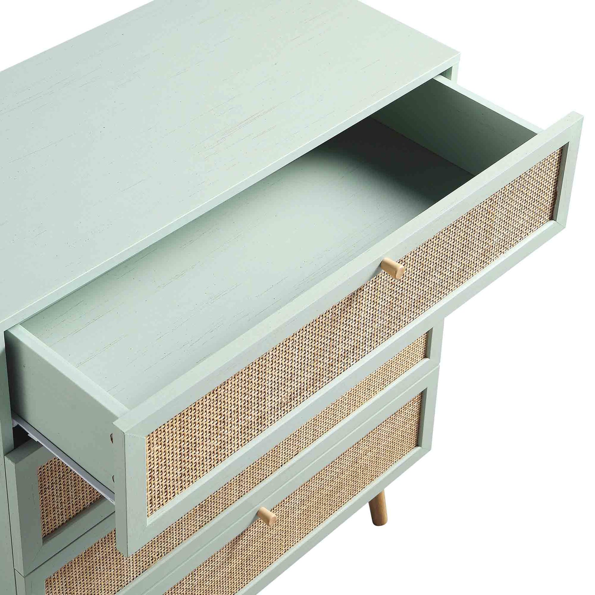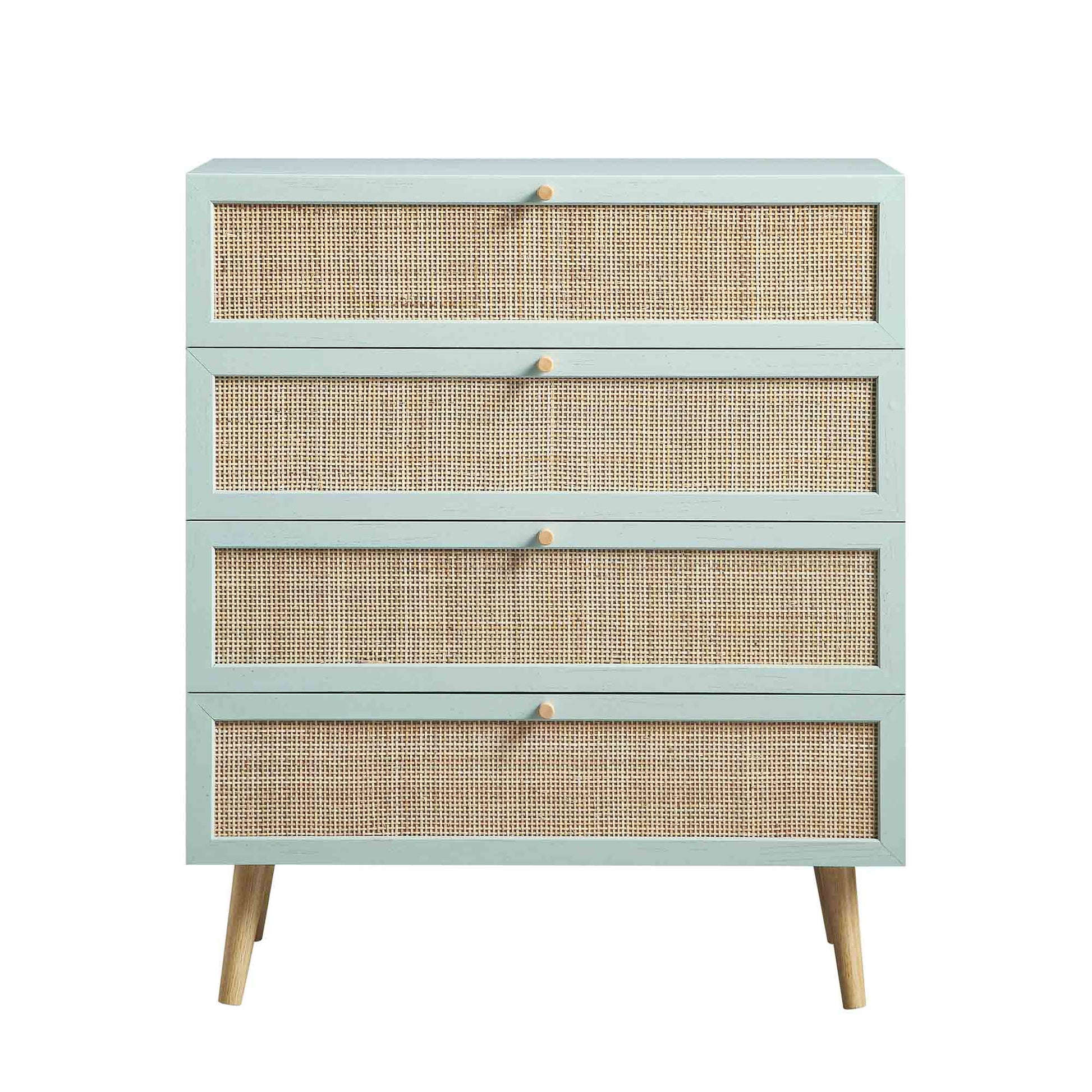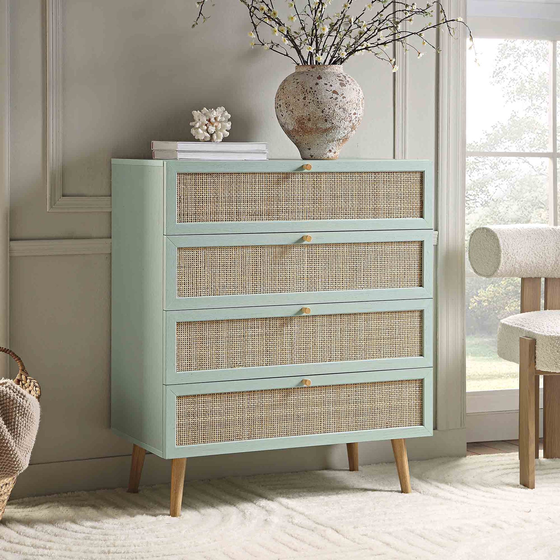 Frances Woven Rattan Tall Chest of 4 Drawers, Mint