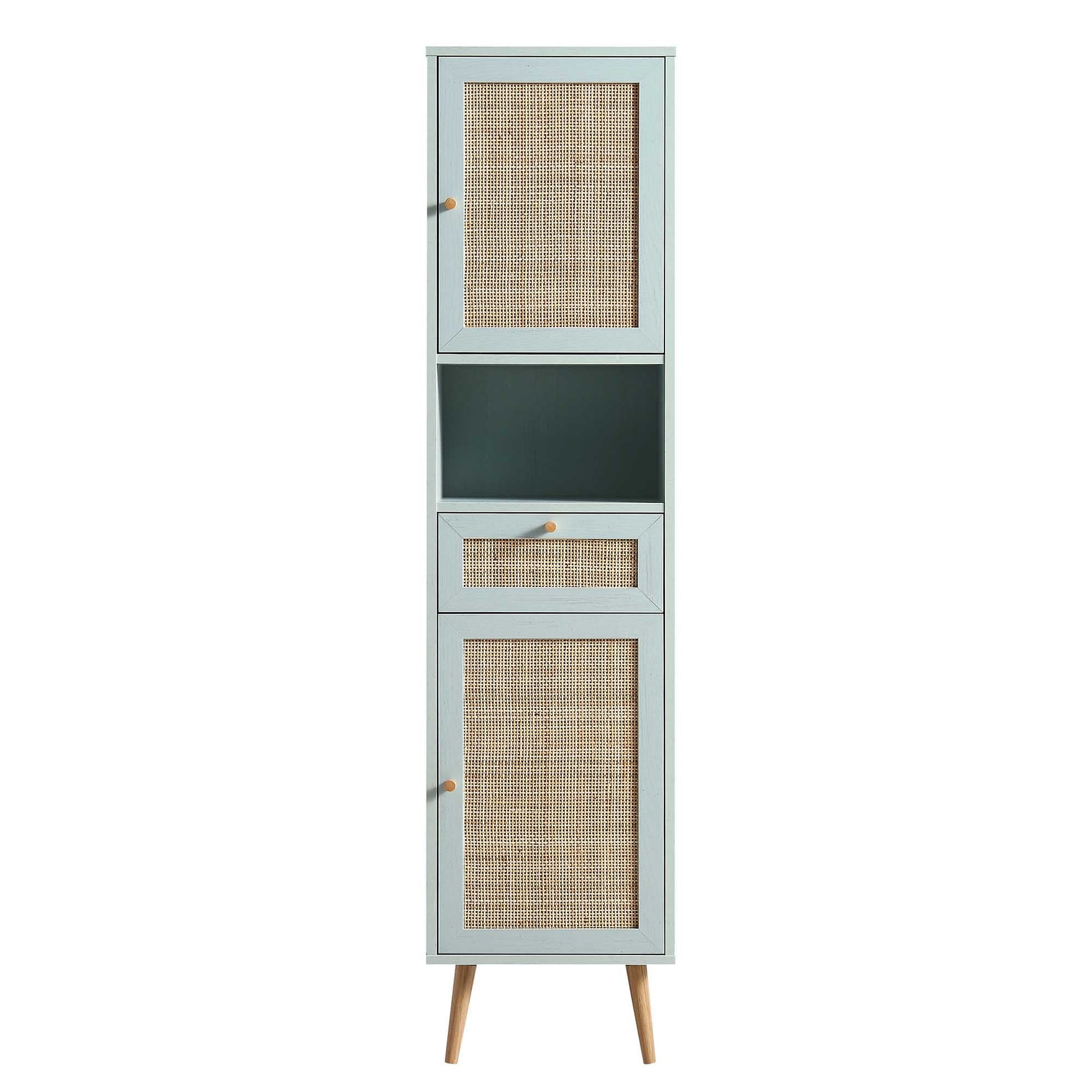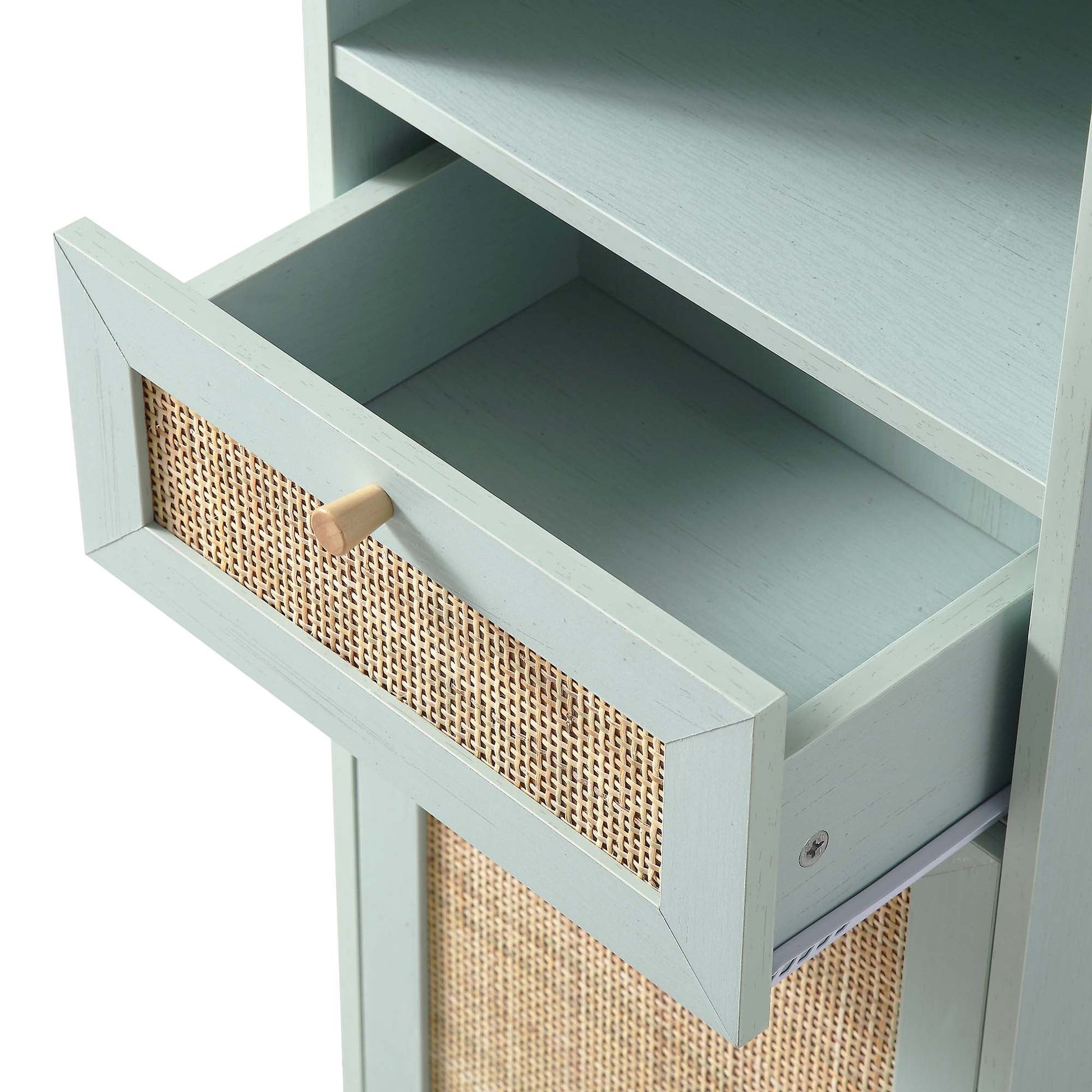 Frances Woven Rattan Tallboy Bathroom Unit, Mint Green