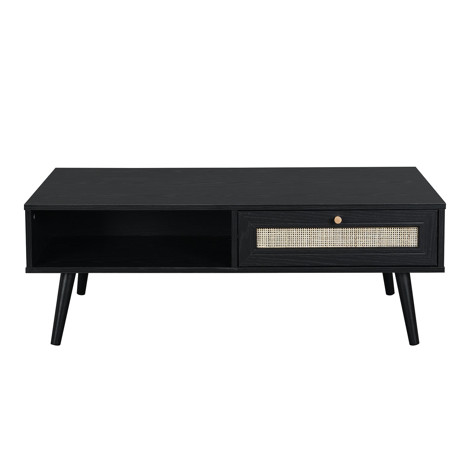 Frances Woven Rattan Wooden Coffee Table in Black Colour