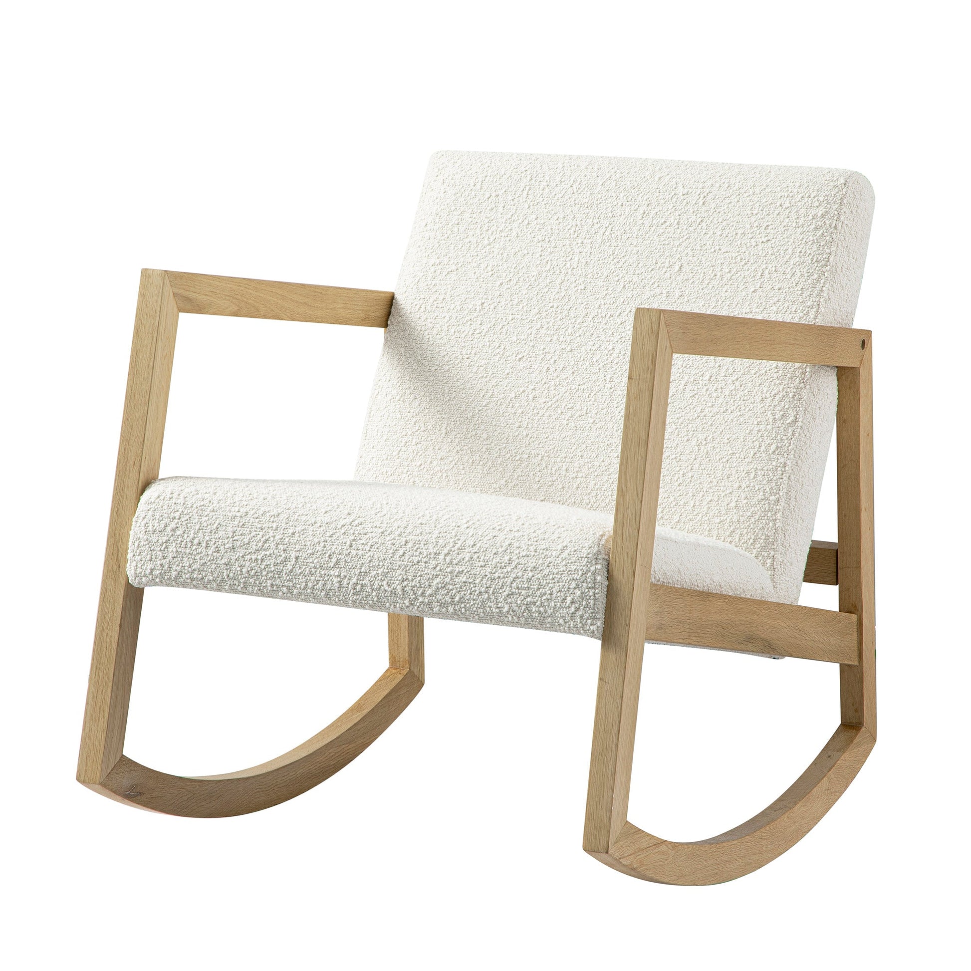 - Complete the look: Pictured with the Fyne Ecru Boucle Natural Oak Rocking Armchair is our Calliope Beige Velvet Skirted Armchair.