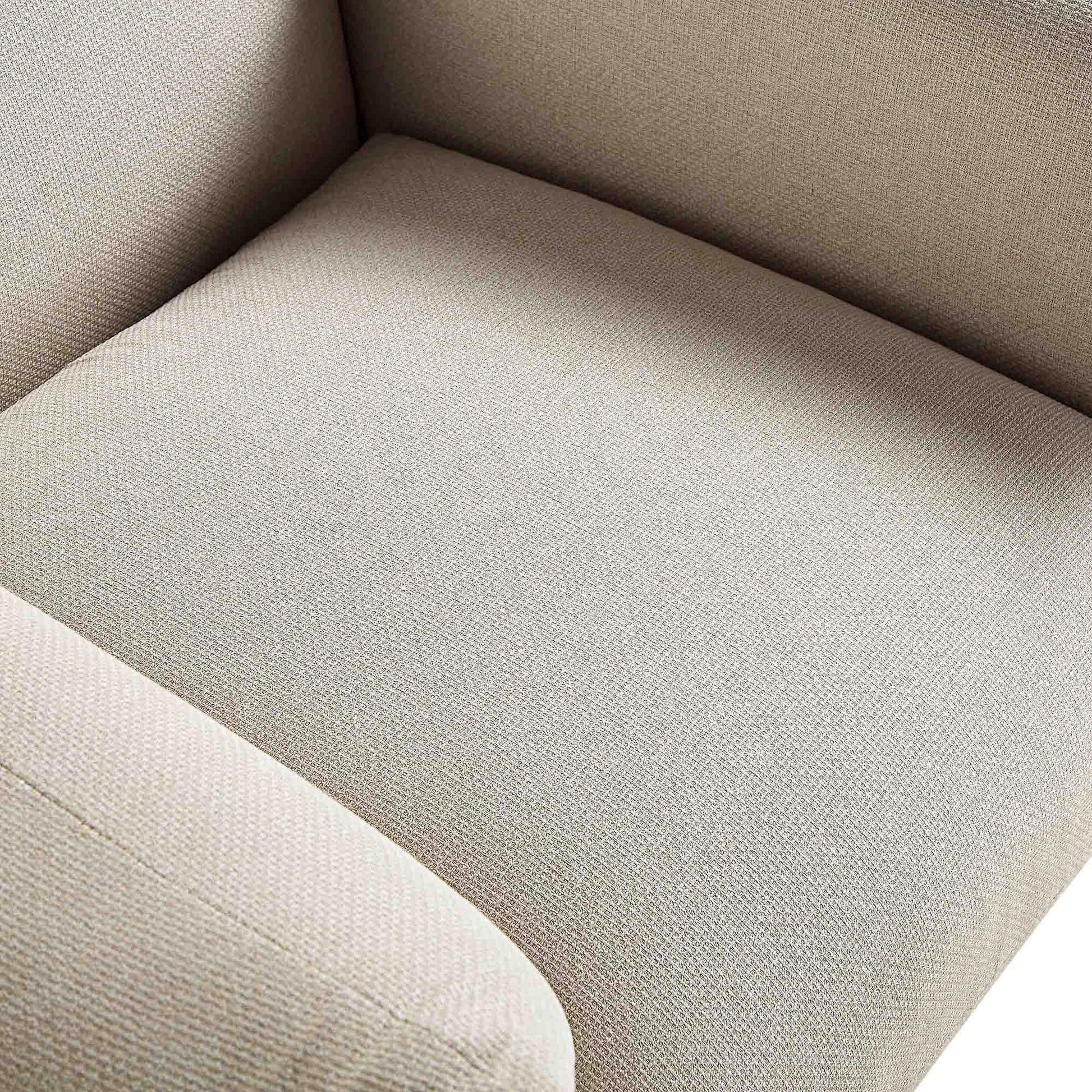 - Upholstered with durable neutral tone beige woven fabric to complement any home decor.