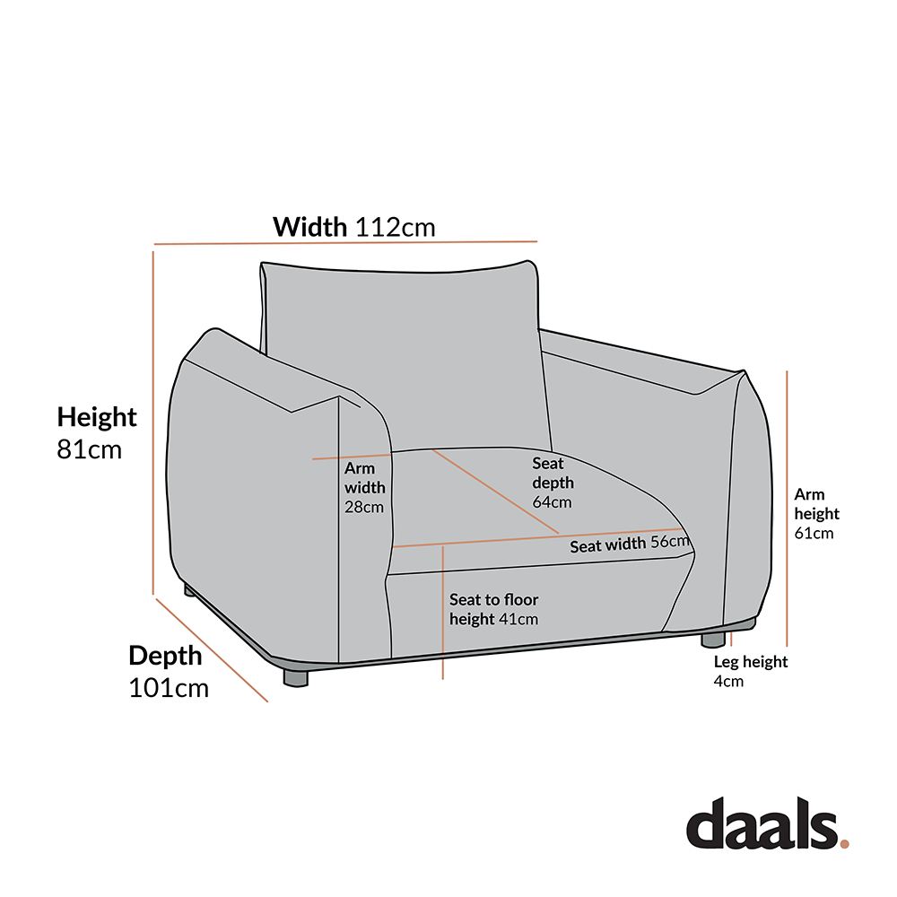 - Accent chair size: W 112 x D 101 x H 81 cm.
