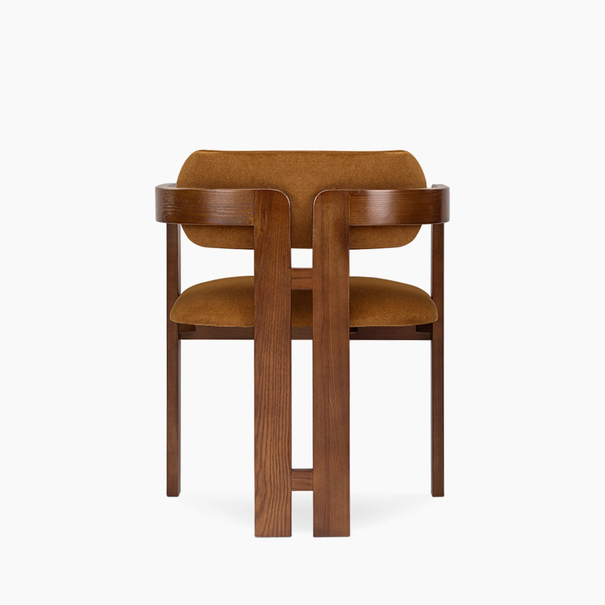 Hallie Wooden Carver Dining Chair | Caramel Brown Sustainable Mohair Velvet & Walnut
