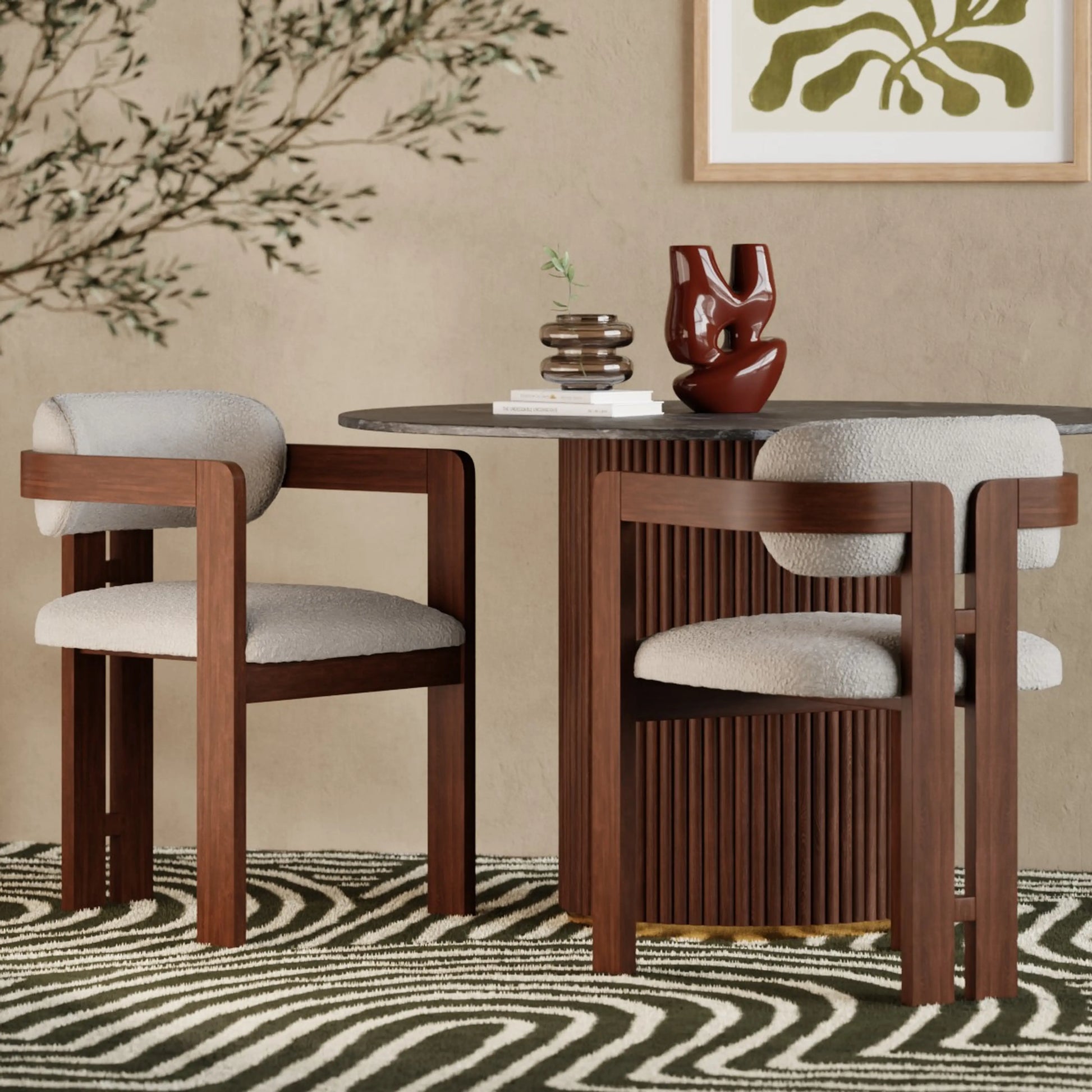 Hallie Wooden Carver Dining Chair | Speckled Stone Sustainable Boucle & Walnut