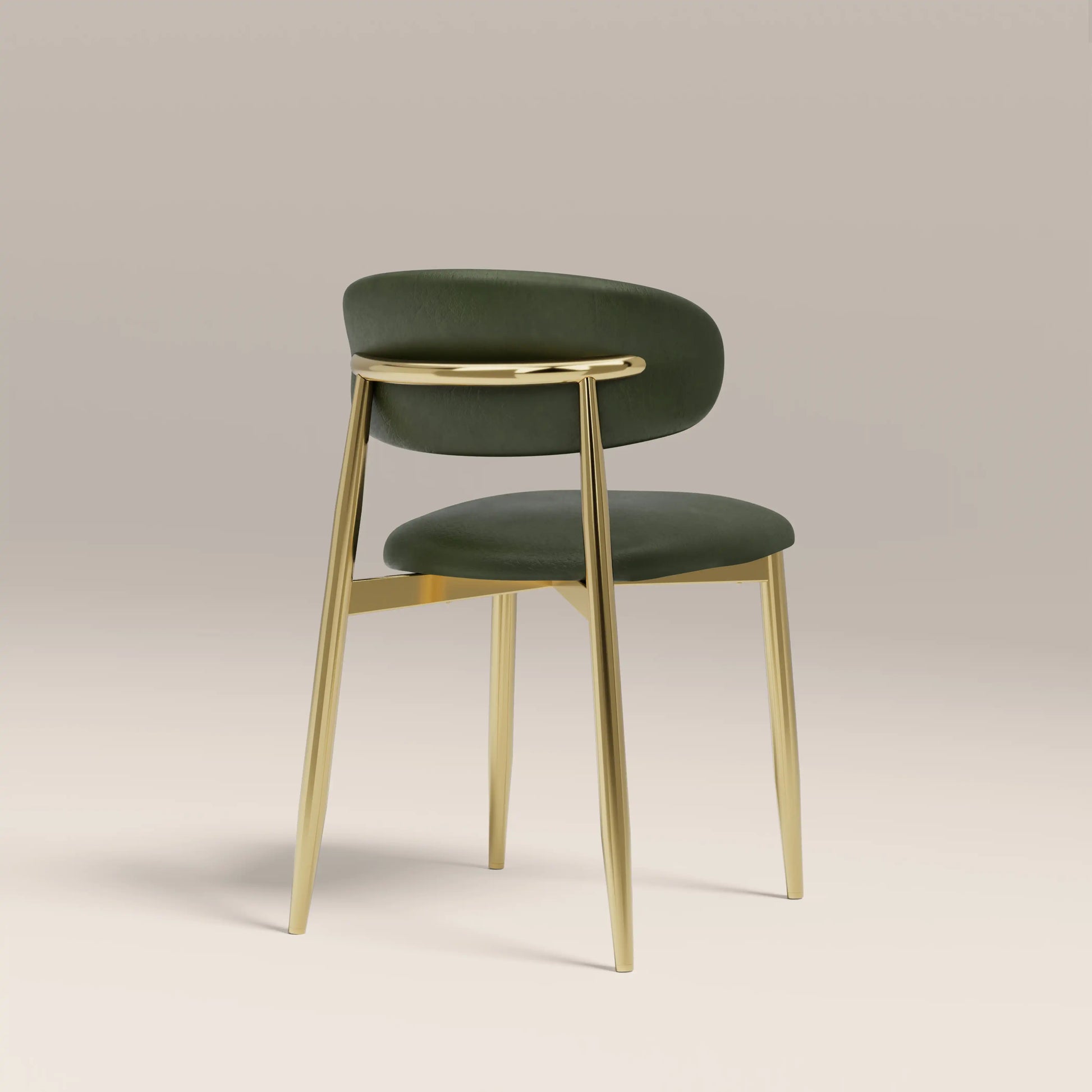 Halston Dining Chair | Vintage Green Faux Leather & Brass