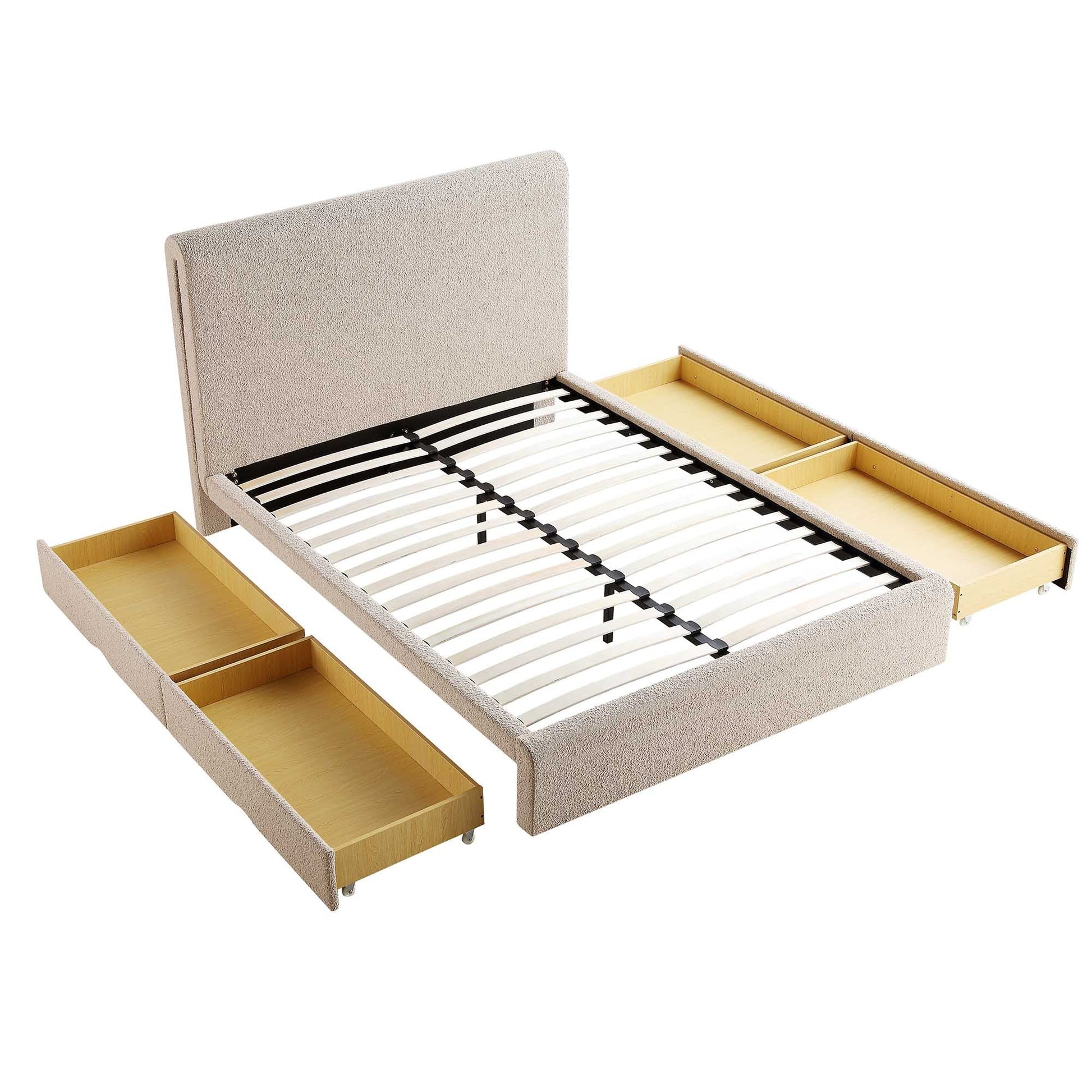 Hampstead Taupe Boucle Curved Bed with 4-Drawer Storage