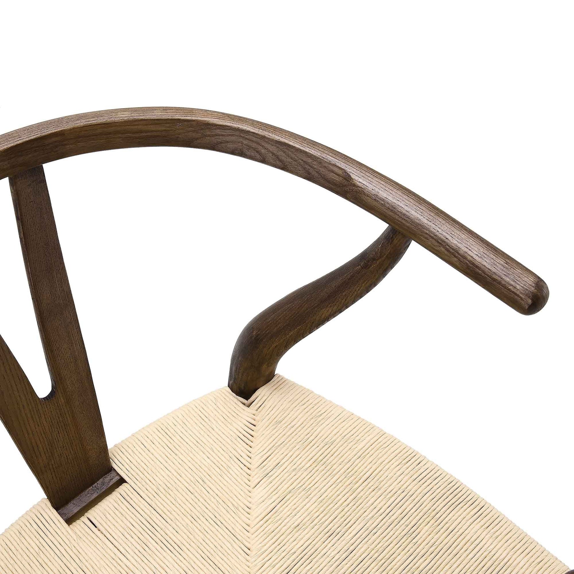 - Featuring the Y-shaped back and weaved seat pad, the chair is sturdily crafted from solid elm wood without compromising comfort.