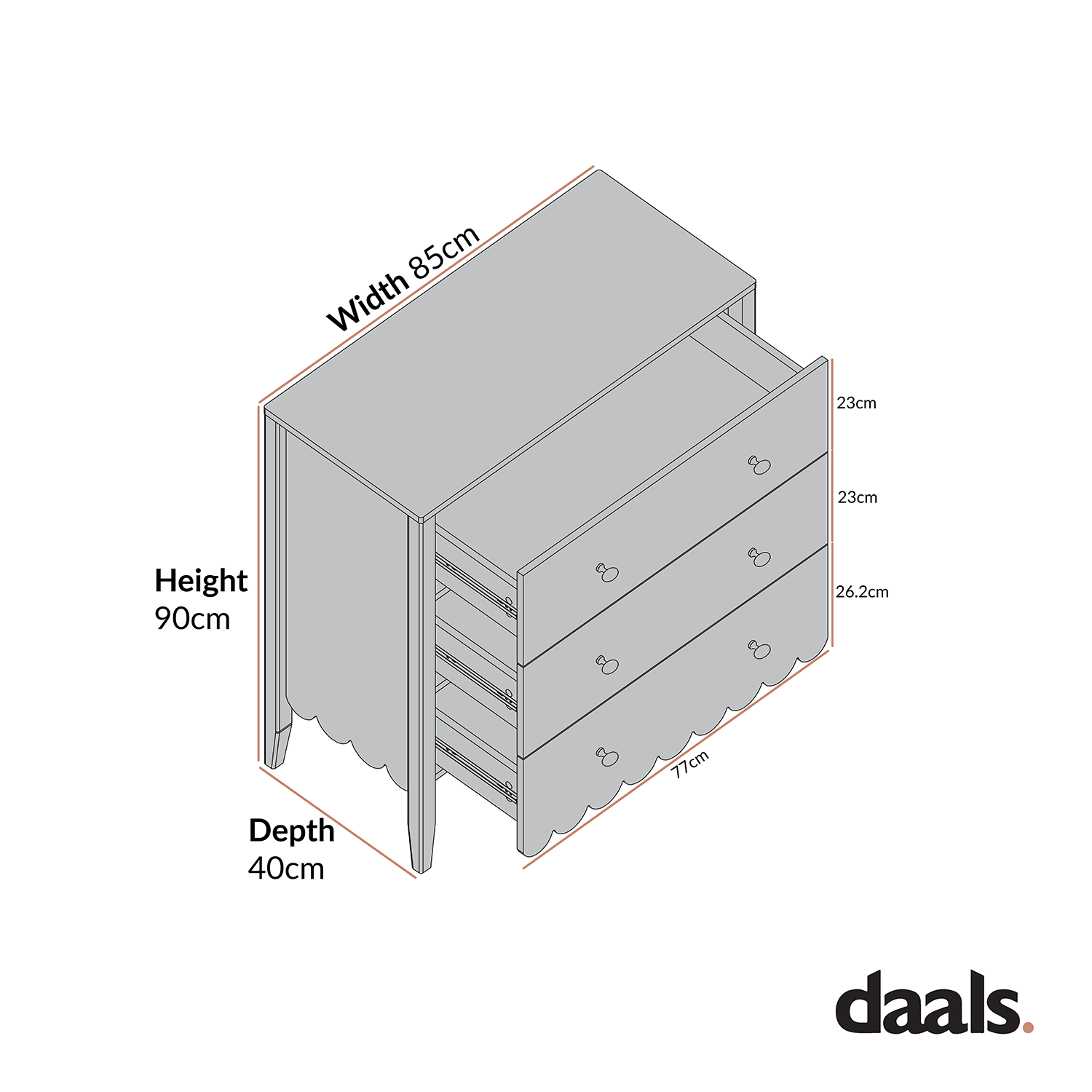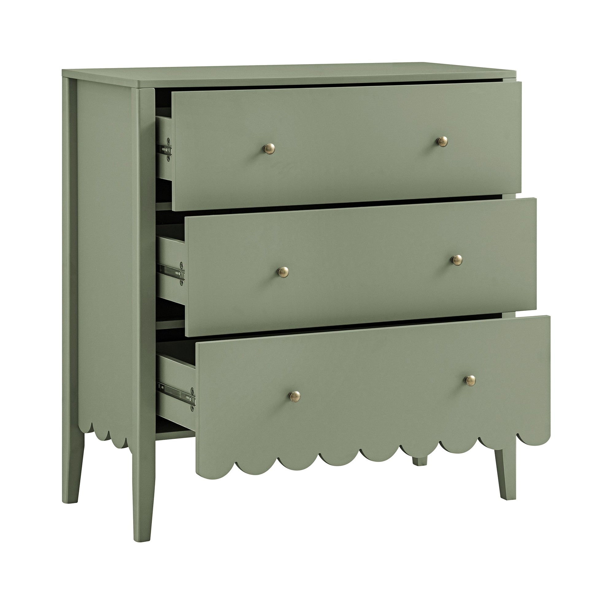 Henley Scalloped Edge 3 Drawer Chest, Sage Green