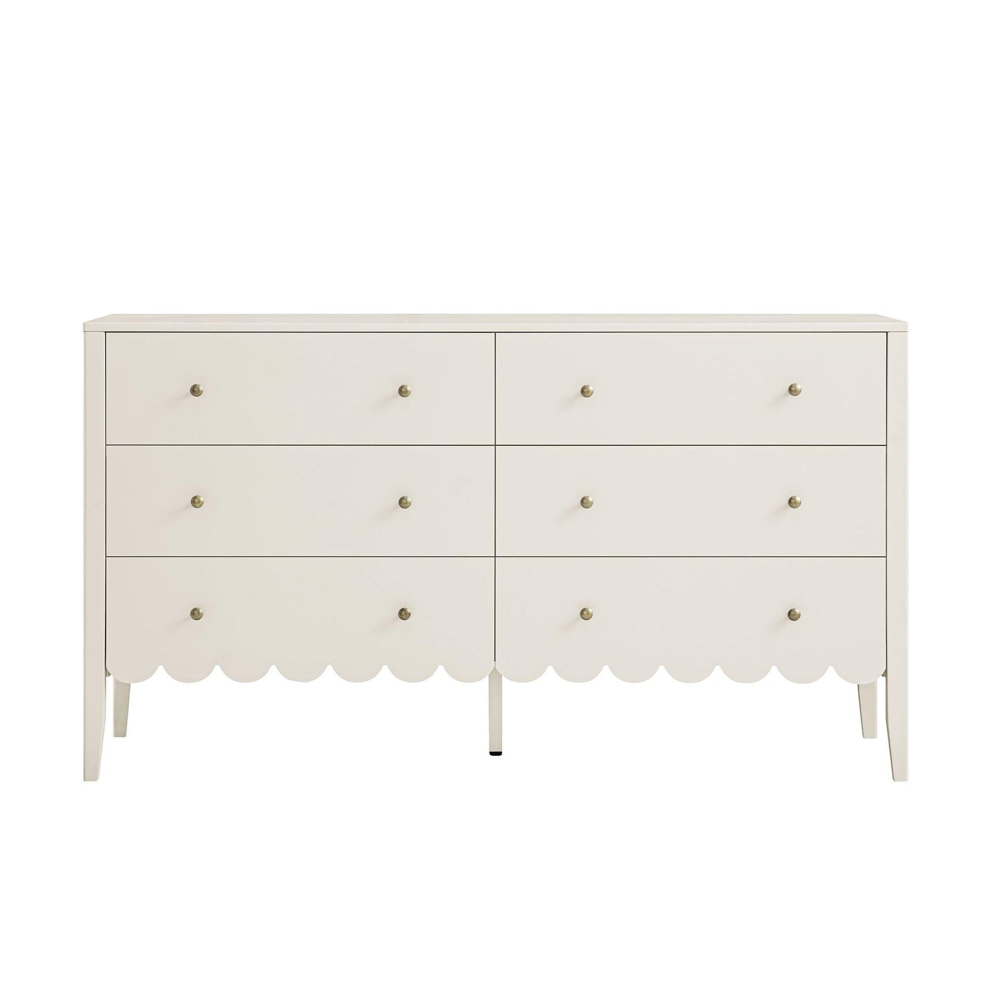 Henley Scalloped Edge 6 Drawer 140cm Wide Chest, Light Sand
