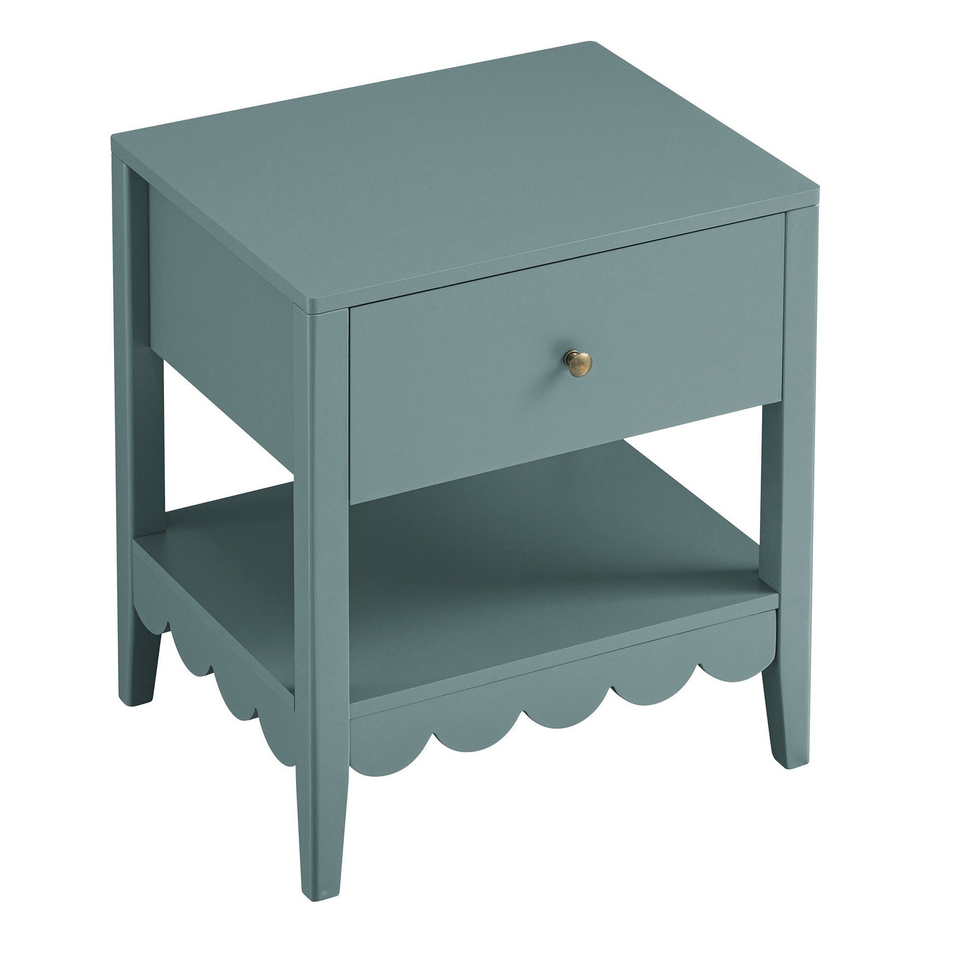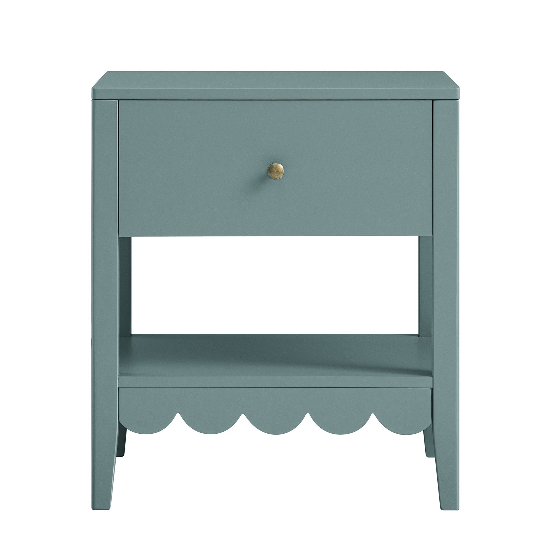 Henley Scalloped Edge Bedside Table with Drawer, Blue Spruce