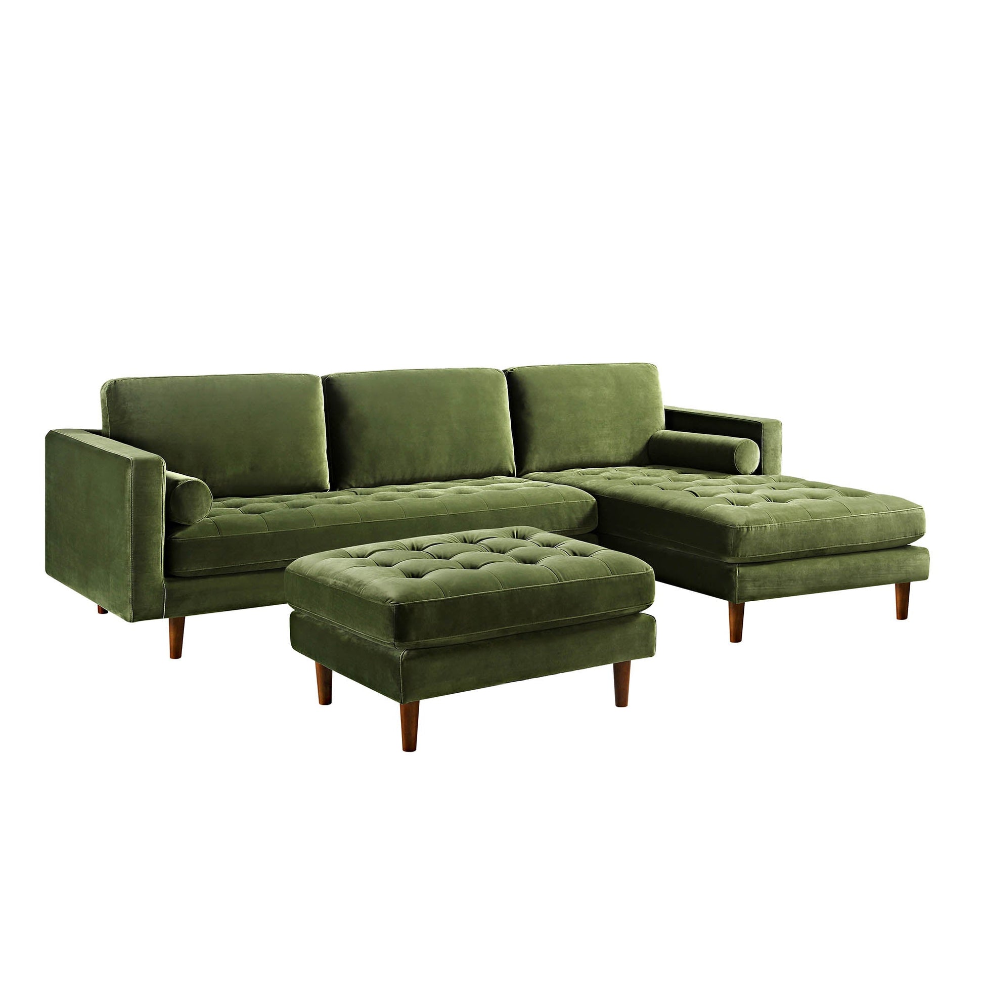 Henrietta Moss Green Velvet Grand 4-Seater Chaise End Sofa, Right Hand Facing