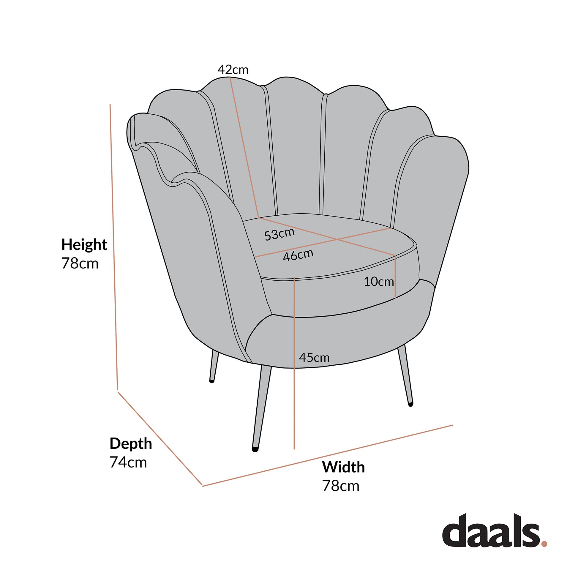 - Cosy plush velvet upholstery / Internal frame and legs are metal.
