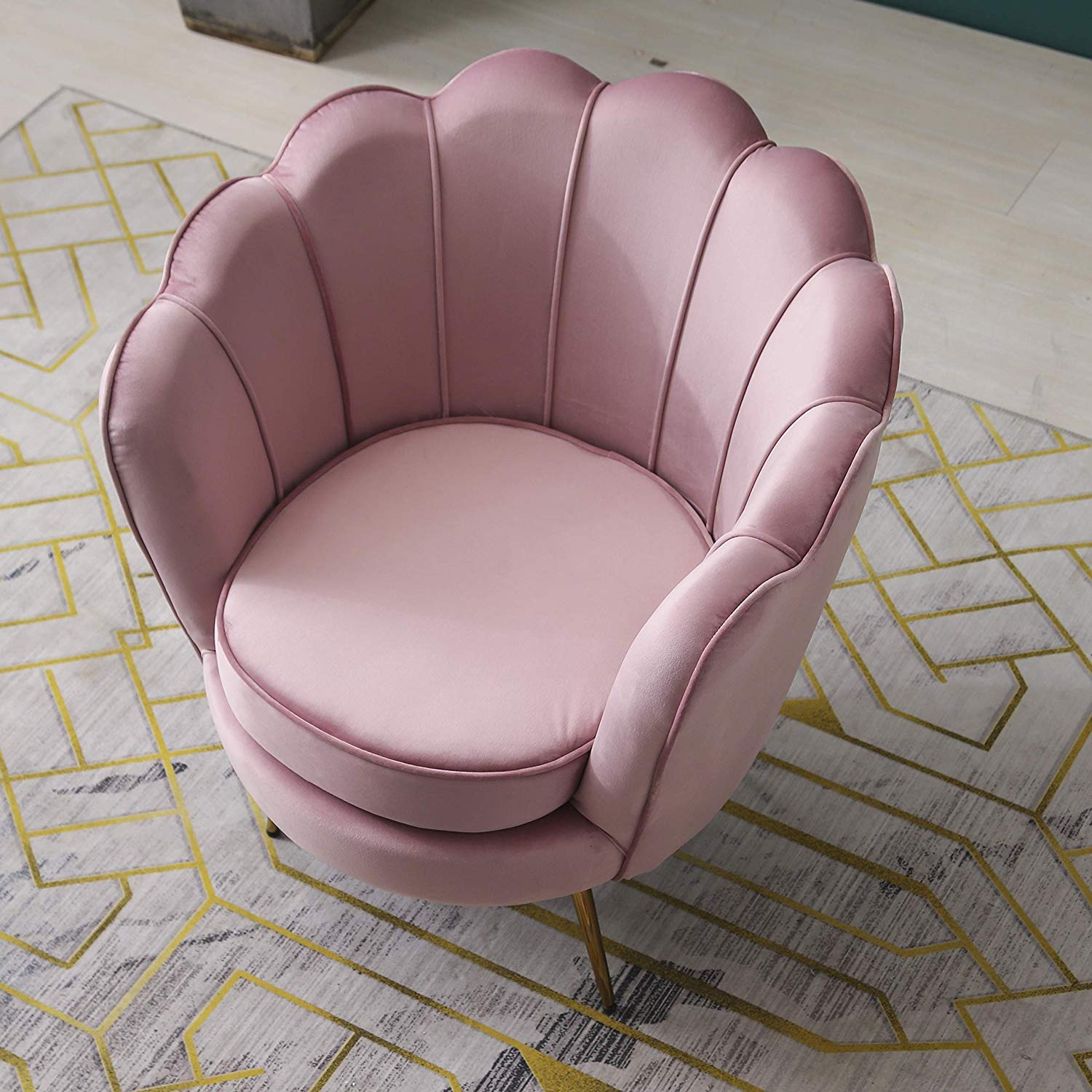 - Its scalloped edges, gold-colour plated legs, together with ample foam padded seat and internal metal frame, make the chair both stylish, functional and sturdy.